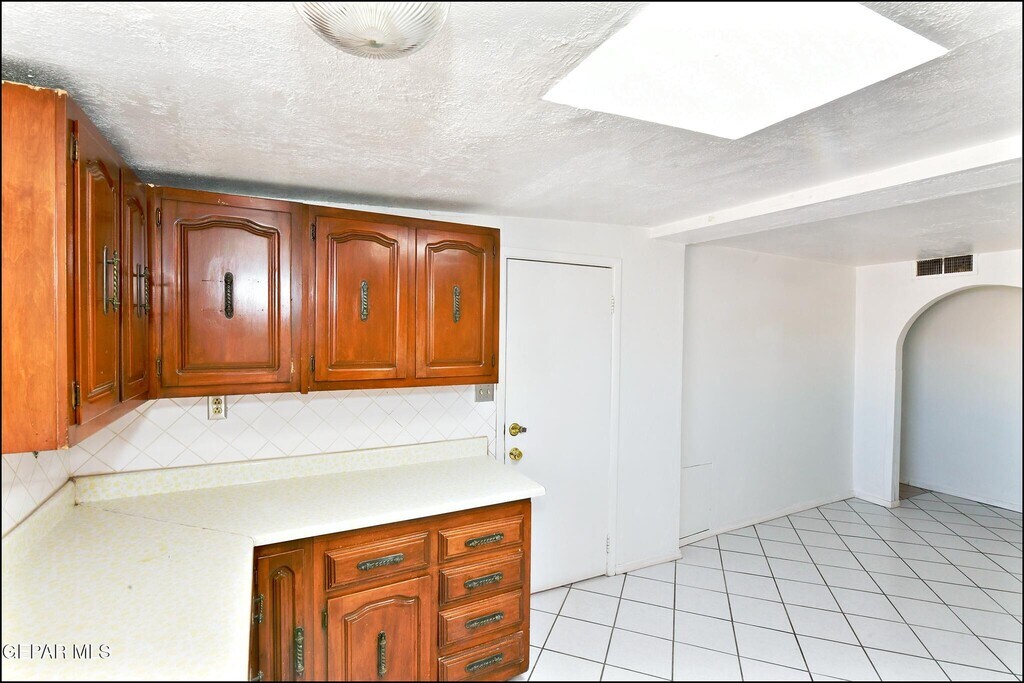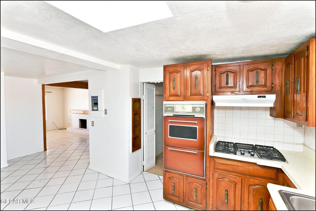 Beautifully timeless,this 3-bedroom,2-bath residence is set behind a gated front yard with mature landscaping and a welcoming brick façade. The interior features a cozy living room centered around a classic painted fireplace,with large front-facing windows providing lovely natural light. The adjoining dining area is framed by wood accents and leads into a spacious kitchen fitted with generous cabinetry,a gas cooktop,built-in appliances,and a large skylight that brightens every corner. Each bedroom offers ceiling fans and tiled flooring,ensuring year-round comfort. Outdoors,enjoy a vast backyard with a covered patio,picnic seating,and ceiling fans—an inviting space for any time of day. Located in the Lower Valley near Ascarate Park and shopping along North Loop Drive. Deposit-Free Renting service to Obligo qualified renters,fees may apply.