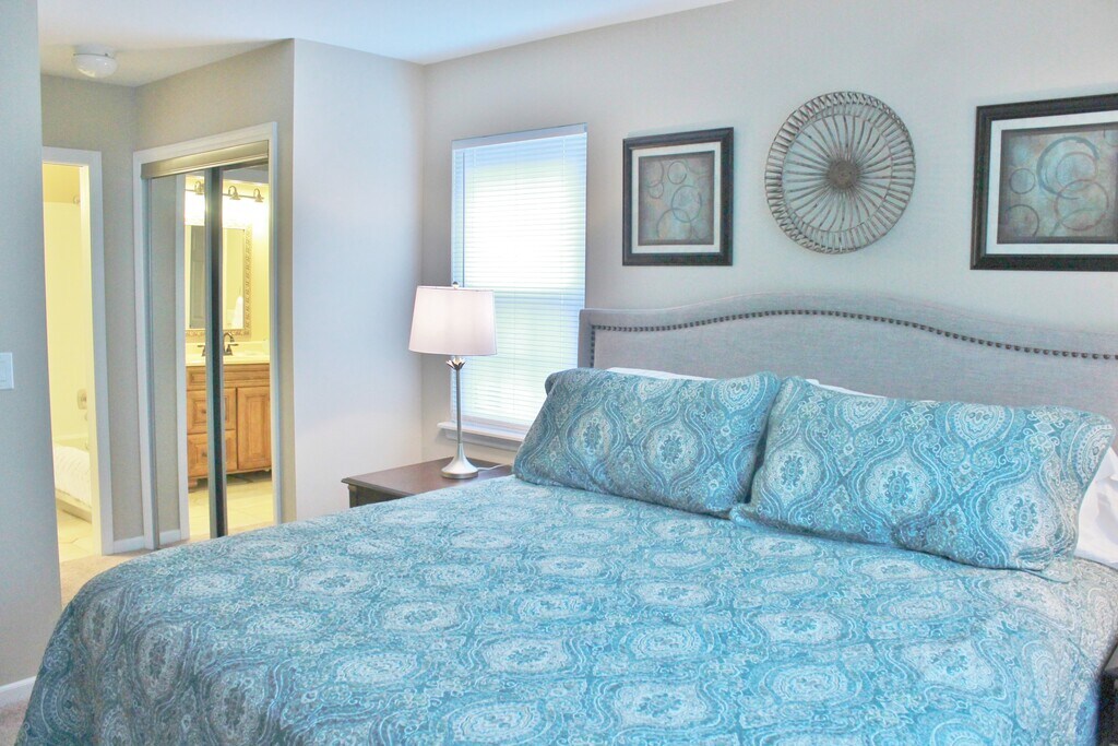 Fabulous 2 bedroom condo in a wonderful location! Convenient to Ballantyne, Southpark, I-485, shopping and restaurants. Large, open floor plan with loads of natural light. Cozy fireplace in livingroom. Convenient first floor location, with a nice outdoor patio. The master bedroom has a king sized bed, private bath and 2 double closets. The guest room also has a king sized bed and a private bath. Livingroom and bedrooms have flat screen smart tv's. Amenities: A/C Wifi Cable Utilities Washer/Dryer TV's (3 flat screens) Towels Linens Pool All of our properties come completely furnished. Rental includes all utilities, basic cable, wireless internet as well as all of your linens, towels, pots & pans, dishes, washer and dryer..…all you have to do is unpack your suitcase and start making yourself at home!
