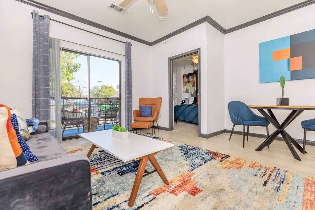 The community offers a range of amenities,including a lounge with Wi-Fi access,a leisure pool with cabanas and a sun deck,and covered parking with detached garages available. There are also nearby public parks,a fitness center,a spacious bark park,and an indoor basketball court. Amenities include 2-inch faux wood blinds,a breakfast bar,and Texas-sized walk-in closets. Additionally,the community features 9ft ceilings with crown molding,designer two-tone paint,and luxurious vinyl plank flooring. For added convenience,there’s additional patio storage and a gourmet kitchen,with some units offering attached garages. MLS# 53935477