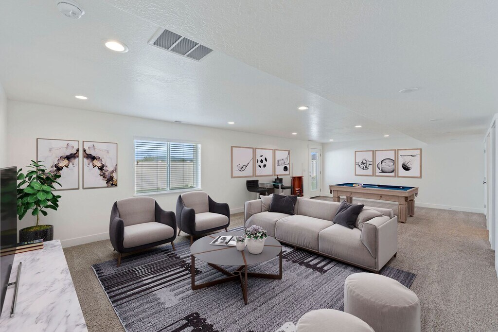 This stunning 6-bedroom, 3-bathroom home features an open floor plan with a spacious master suite that includes a walk-in closet. Enjoy luxurious LVP flooring, granite countertops, and stainless steel appliances throughout the home. It boasts 9-foot ceilings, a large family room, and an oversized double-car garage, along with a fully enclosed vinyl-fenced backyard. You can take advantage of the convenience of no lawn maintenance, as we handle all mowing and yard work for you. Additionally, there is no cost for watering your lawn thanks to access to secondary water. Residents have exclusive access to a fitness center, swimming pool, spa, and a state-of-the-art movie theater with 42 seats. You can also reserve the clubhouse and theater for private events. Please note that the photos showcase the Woodland Canyon View model home, and some homes may vary in style and design.