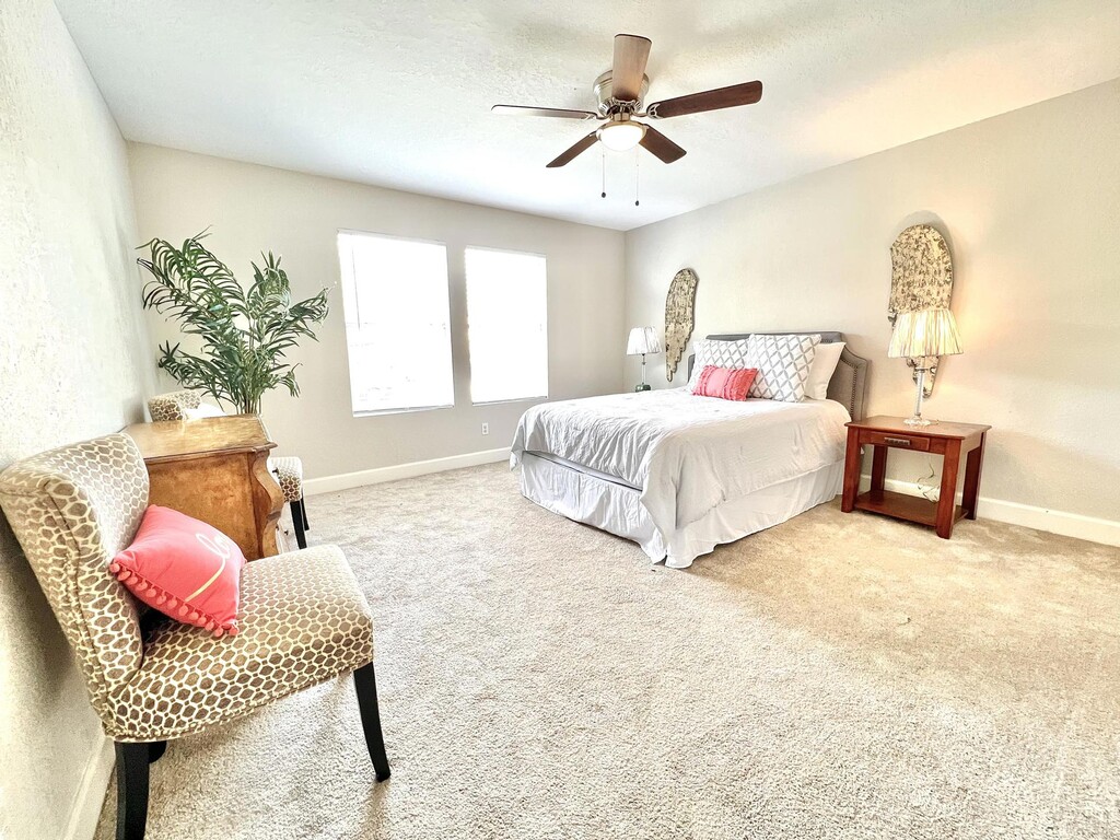 Welcome to your new home at 7834 Cabello Canyon, a charming single-family residence in the heart of San Antonio! This spacious 3-bedroom, 2-bathroom unit offers 1,564 square feet of stylish living space, perfect for families and professionals alike. Enjoy modern decor in the inviting living room, complete with a mounted flat-screen TV and cozy seating options, making it the perfect spot for relaxation and entertaining. The gourmet kitchen is equipped with stainless steel appliances, including a dishwasher and microwave, paired with elegant hardwood flooring throughout the unit. Experience ultimate convenience with essential amenities like in-unit washer/dryer, central air conditioning, high-speed internet, and ample parking space. All utilities—including water, gas, and trash—are available, ensuring a hassle-free living experience. This month-to-month lease option provides flexibility for your housing needs. Pet owners will love our pet-friendly policy, accepting both cats and dogs with a small fee. Explore the aesthetics of your new space adorned with carefully selected artworks and modern decorative pieces that enhance the ambiance of each room. The well-lit areas, from the small black home office setup with a trendy orange chair to the cozy indoor corners with decorative benches, create an inviting atmosphere that inspires comfort and creativity. Located in a friendly neighborhood, you'll find convenient access to local parks, schools, shopping, and dining options. Make 7834 Cabello Canyon your new sanctuary, where contemporary living meets the warmth of home. Schedule a tour today and experience this remarkable residence for yourself!