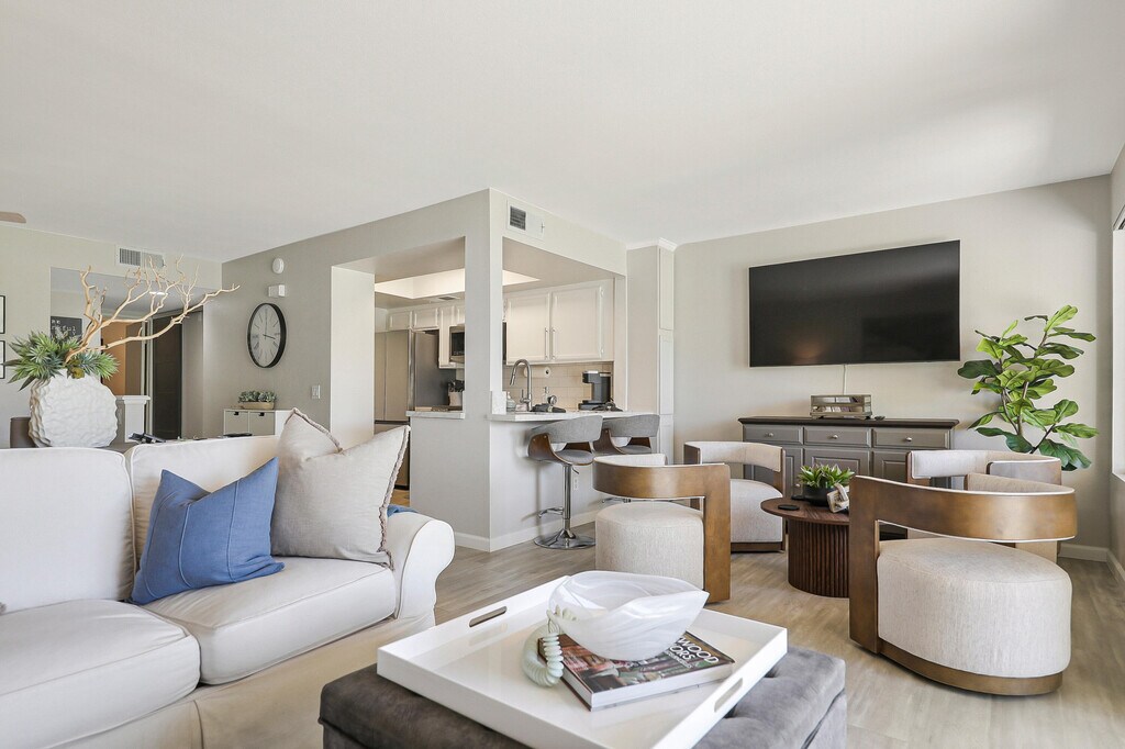 LEASE AVAILABLE APRIL 2026 If you've been waiting for a condo that truly stands out - this is it! This beautifully updated lower-level 1 bedroom,1 bath home offers south facing and fairway views,no stairs,and a modern interior that's rarely found in the community,this condo checks every box. Inside,you'll find 10mm Pergo wood flooring. quartz countertops,subway tile backsplash,and stainless-steel smart appliances,including a WI-FI -enabled refrigerator and slide-in-range. Fresh new paint and stylish furnishings create a clean,contemporary feel throughout. Step outside to your private south-facing patio overlooking the 8th fairway and surrounding mountains- perfect for morning coffee,winter sun,and peaceful desert evenings. A detached one-car garage adds valuable storage,privacy,and everyday convenience. Located in the gated resort-style community featuring,six pools and spas. tennis and pickleball courts,dog parks,and disc golf. Just across the street from Indian Wells Tennis Gardens and minutes to shopping,dining,and entertainment. South-facing,No stairs,fully updated A rare combination that makes this one of the most desirable condos in Palm Royale. Call me today for your private showing. This rate is for Summer months,call me for pricing details! MLS # 219142837