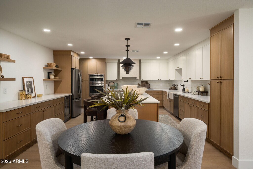 Charm,style,and on-trend design come together seamlessly in this stunning patio home,thoughtfully renovated from top to bottom. Featuring a completely open floor plan,the chef's kitchen flows effortlessly into a showstopping living space--perfect for both entertaining and everyday living. The kitchen is a true centerpiece,highlighted by an expansive 10-foot island,two-tone cabinetry,double ovens,an induction cooktop,and a built-in bar area. Designed with both comfort and sophistication in mind,the home showcases designer finishes and elevated lighting typically found in million-dollar properties,along with luxury LVP oak flooring throughout. Two spacious bedrooms are complemented by beautifully appointed bathrooms,while the rare in-unit stackable laundry adds convenience