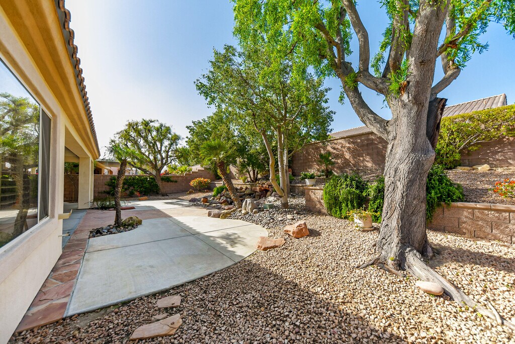 Discover the epitome of comfort in this Montego model home,available for lease in the premier 55+ community of Sun City Palm Desert. Embrace the serene ambiance as you step into the inviting space,adorned with desert landscaping in the front yard. Inside,the open floorplan welcomes you with a flood of natural light streaming through large windows by the slider,adorned with elegant shutters. The kitchen boasts pristine white countertops,complemented by wooden cabinets and gleaming stainless-steel appliances,seamlessly flowing into the dining area. Venture into the backyard oasis,featuring a captivating rock waterfall amidst desert landscaping,trees,and bushes,creating a tranquil retreat. Unwind in the spacious master bedroom,accompanied by a luxurious master bathroom offering dual vanities,a large glass shower,and an expansive walk-in closet. The guest bedroom and bathroom provide comfortable accommodations for visitors,completing this charming residence. Experience a lifestyle of refinement and relaxation in this immaculate home,with the added convenience of an office/den that can be easily utilized as a third bedroom. This home is a great location within walking distance to the clubhouse! Enjoy great amenities such as tennis,pickleball,clubs,pools,fitness center and much more!