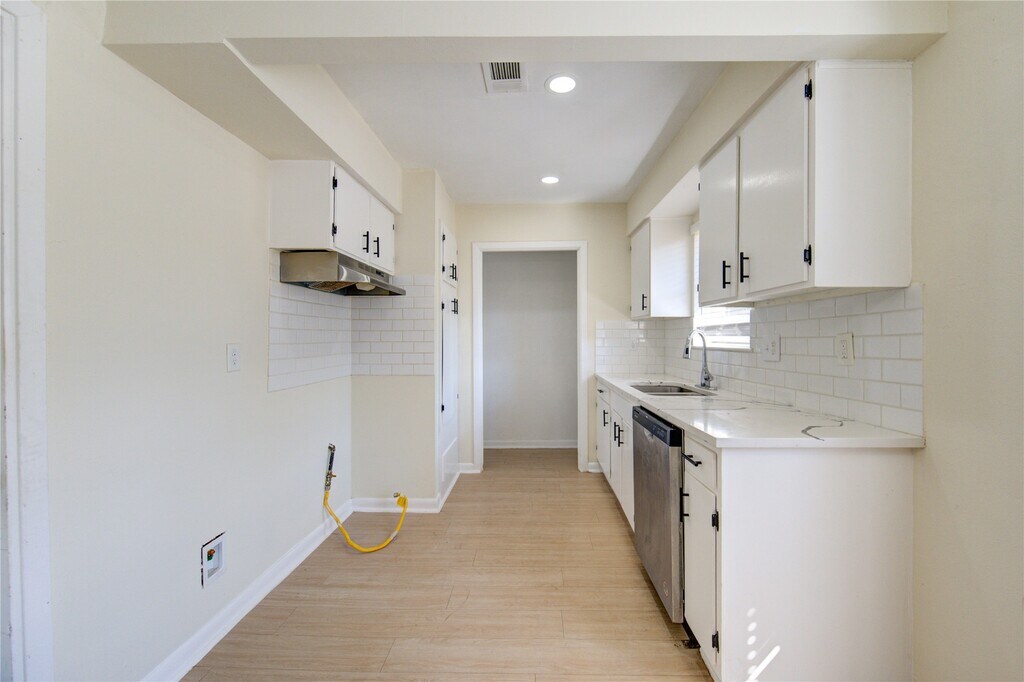Discover this beautiful single-story home with easy access to Beltway 8 and US-90,making commuting a breeze. Perfect for family living,it’s just a short walk to the elementary school,creating and community-focused lifestyle. The newly updated kitchen features an open layout connected to spacious family and dining areas,ideal for gatherings and everyday life. This light-filled space boasts new stainless steel workstation sink,fresh white cabinetry,under-cabinet lighting,stylish backsplash,a custom pantry for ample storage,and stunning butcher quartz countertops.The home offers high ceilings,new floors,and remodeled bathrooms,enhancing its modern appeal. The bedrooms are generously sized,providing privacy and easy-to-maintain flooring. Enjoy the charm of a bay window breakfast nook. MLS# 22988911