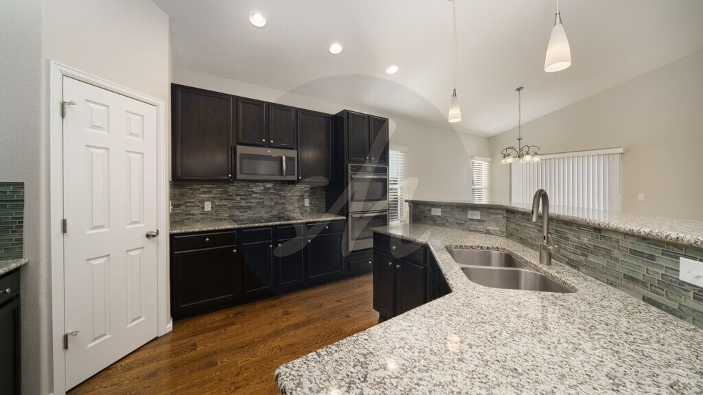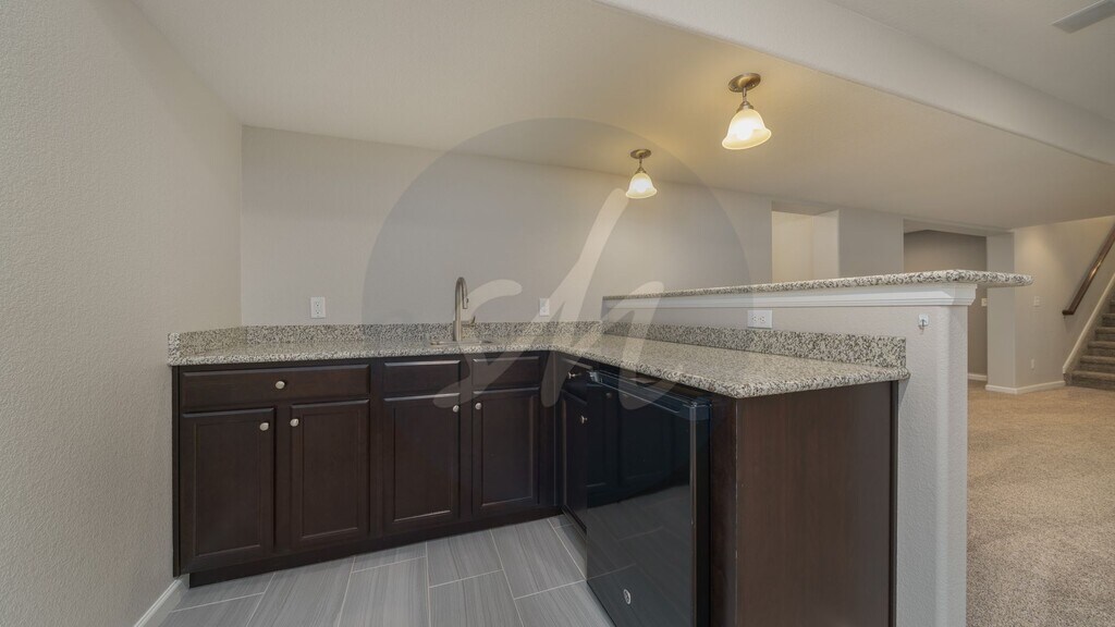 This beautiful 4-bedroom, 3-bathroom home has everything you need! The main level welcomes you in with a bedroom and bonus room which opens up to the kitchen, dining and living area. The kitchen boasts double ovens, a large pantry, with plenty of cabinets and granite countertops. The primary bedroom features a spacious closet and a luxurious 5-piece bathroom with a jetted tub and spa-like shower with body sprays, bluetooth speakers and more! The finished basement offers two additional bedrooms, an entertainment room complete with a built-in screen, and living area, with a wet bar. In the backyard, enjoy a fire pit with built in bench seating. Additional features include an attached 3-car garage with ample space for extra storage. This is one you'll want to experience in person, so schedule your tour today! Application: 3d Tour:
