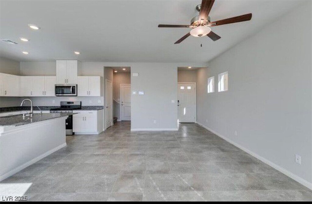 Move-in ready 4 BR 2 1/2 BA home in the desirable 89113 area. This home offers plenty of open space. The porcelain flooring is gorgeous and easy to clean. The kitchen provides cozy charm and ample counter space. The primary suite, located on the 2nd level, the ensuite bathroom provides both comfort and convenience with a dual sink vanity, large shower, and a walk-in closet. This property offers plenty of yard space with artificial turf and pavers, and the convenient location of this home ensures that you're close to all amenities, making daily errands and outings a breeze. Don't miss out, schedule your private showing today!
