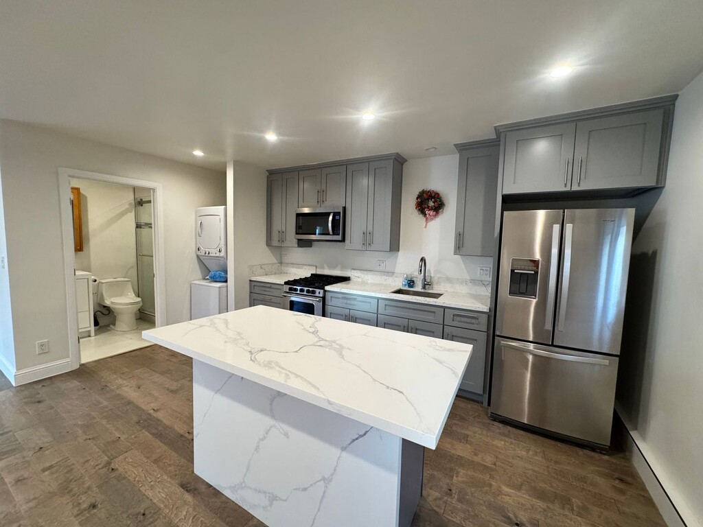 Newly renovated 2 bedroom 2 bath house. Two parking spaces. Freshly paint with stainless steel appliances (gas stove, oven, and dishwasher), hardwood floors, and central air. Open house every Monday by appointment only. Please call to schedule appointment