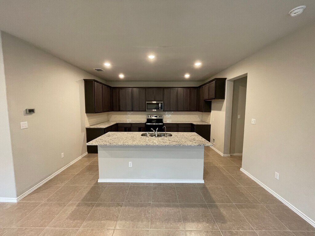 Welcome to 7843 Abbey Place, a like-new two-story home located in one of San Antonio’s newest and fastest-growing communities. This spacious residence offers a modern open-concept layout designed for both everyday living and entertaining. The main level features a bright living area that flows seamlessly into the kitchen, which is equipped with granite countertops, a large center island with breakfast bar seating, abundant cabinet space, and a refrigerator included for your convenience. Whether hosting guests or enjoying a quiet night in, this layout offers flexibility and comfort. Upstairs, you’ll find four generously sized bedrooms along with a large game room—perfect for a media space, home office, or playroom. The primary suite is a true retreat, featuring a spacious bathroom with a large walk-in shower and beautiful tile surround. Additional highlights include modern finishes throughout, ample storage, and a thoughtful floor plan that maximizes space and functionality. Conveniently located near major highways, shopping, dining, and everyday essentials, this home offers the perfect blend of comfort and accessibility.