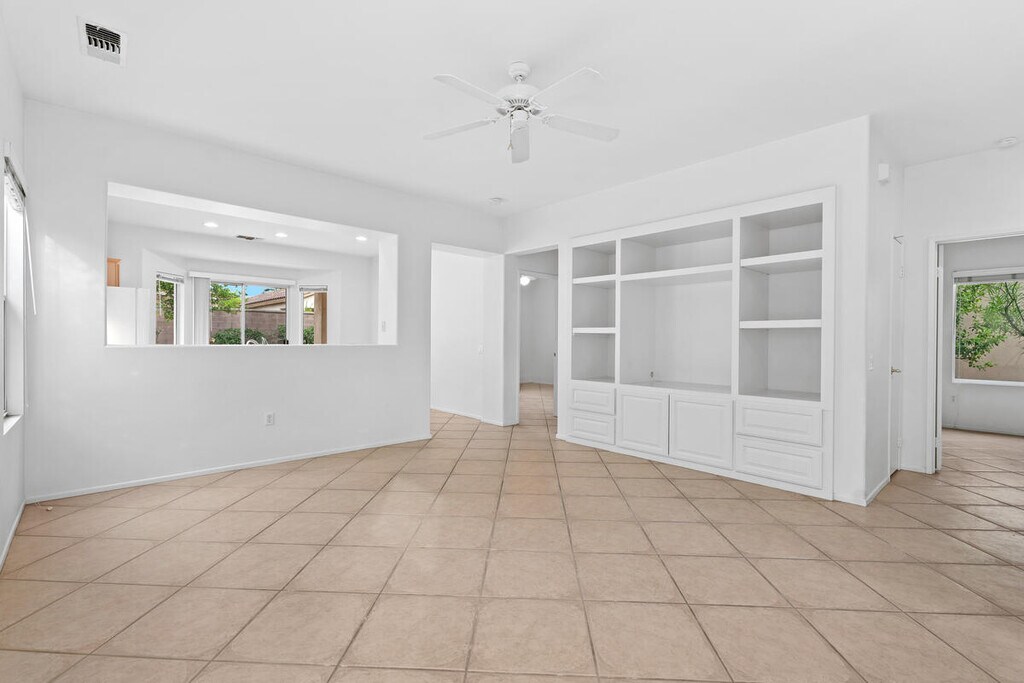 Your new life awaits in Palm Desert Sun City 55+ Community! Golf,tennis,dining and fitness! Clubs and activities galore. Nicely upgraded Pasadena model. Tile flooring throughout plus lots of built-ins in bedroom and living room. Open concept. Low maintenance Desert landscaping with fruit trees. Attached 2 car garage. Just two lots to community pool and one block from resident's only gate providing easy access to shopping and the freeway. Sun City offers lots amenities with multiple golf courses and clubhouses. All ready for new long-term tenant. 12-month lease available. MLS # 219146649