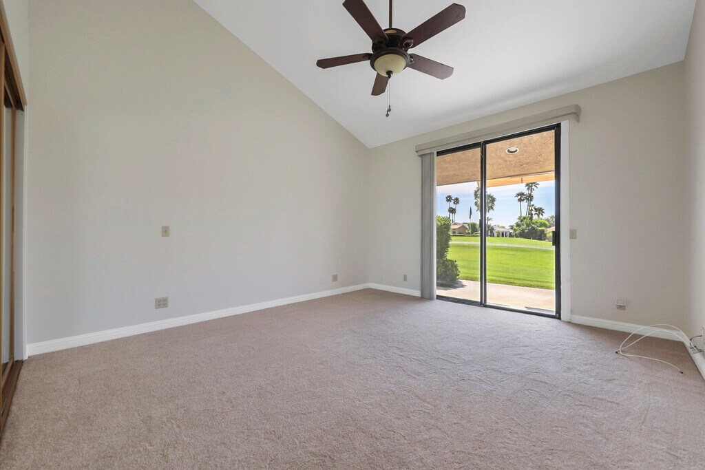 Remodeled 2 bedroom,2 bathroom condo with stunning Southern Mountain Views and located on the 15th fairway in gated Montego Circle... Each bedroom has a patio to enjoy and the condo has walls of glass to let in lots of light,as well as the great views. Gourmet kitchen is open to the GREAT ROOM and boasts slab granite counters,gas cooktop and stainless steel appliances. A spacious two-car garage with room for a golf cart is attached. New carpet and recently painted. There is a convenient electric awning installed on the rear patio,which is on the golf course. Montego Circle has one tennis court and six pools/spas to enjoy. Offered unfurnished,but could furnish if necessary. Rent includes cable TV & internet,water and trash,as well as the community pools/spas and gardening. MLS # 219145781