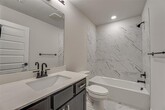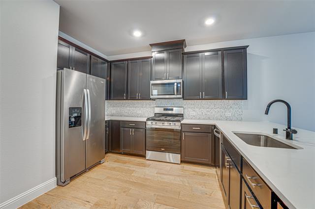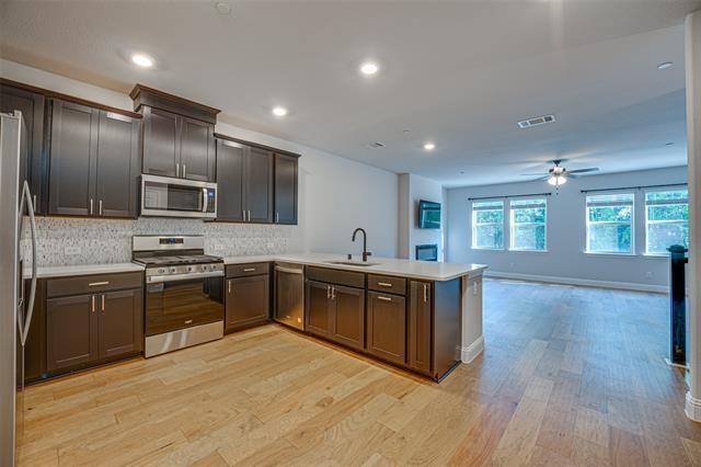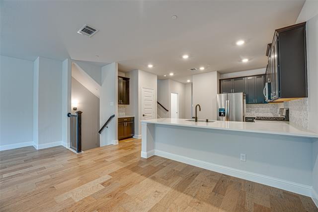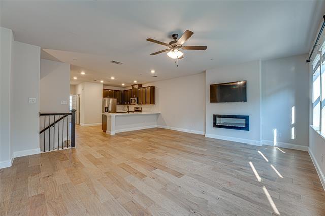 Ready for lake life with a modern twist? This three-story townhome in Rowlett’s vibrant Bayside community puts you right on the shores of Lake Ray Hubbard with room to spread out, entertain, and live your best life. Each level has its own bedroom and full bath, giving you ultimate flexibility — think home office, guest suite, or a private retreat just for you. The first floor sets the stage with a sleek living area and wood flooring, perfect for a cozy lounge or creative workspace.There's a great mudroom-drop area as you head into the home from the oversized rear entry garage. Head upstairs and you’ll find the heartbeat of the home: an open-concept living room with a wall of windows, a color-changing electric fireplace for mood-setting nights in, and a modern kitchen designed for gatherings. Quartz counters, a huge island with breakfast bar, mosaic backsplash, and coffee bar area make it as functional as it is stylish. (Yes, all appliances are included — even the washer and dryer.) The primary suite, located on this mid-levcel, is your spa-inspired sanctuary with a walk-in closet, oversized shower, and dual vanities. On the top floor, another private bedroom with en-suite bath opens to your own balcony terrace — the perfect spot for morning coffee or sunset cocktails with tree-lined views. Step outside and you’re steps away from lakefront trails, two neighborhood parks, volleyball courts, and Peninsula Park’s dog-friendly green spaces. Sapphire Bay Marina and waterfront dining are just around the corner, and with quick access to I-30, Bush Turnpike, Rockwall’s Harbor District, and downtown Rowlett, you’re connected to everything. Life at the lake never looked this fun.