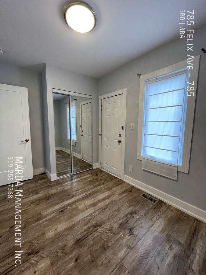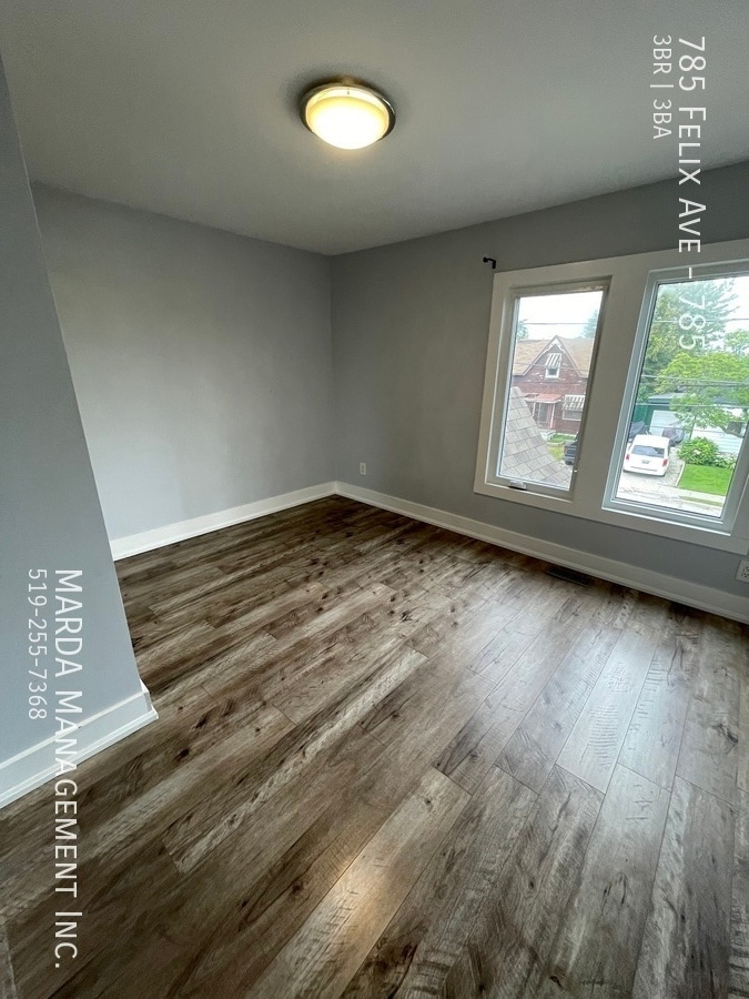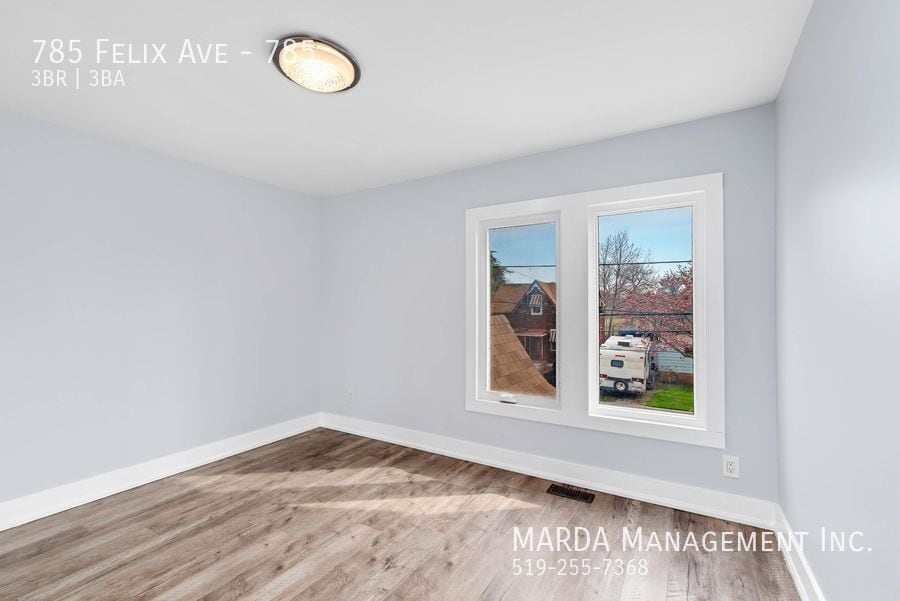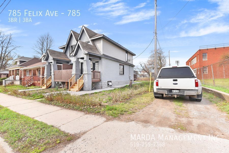 Newly Renovated 3-Bedroom Semi-Detached Home at 783-785 Felix Modern and Spacious! Step into the beautifully renovated semi-detached home at 783-785 Felix, offering a spacious and modern living experience in the heart of West Sandwich Town. This two-story home features three bedrooms, 2.5 baths, and an open-concept living area, perfect for both family life and entertaining. Modern Open Concept Kitchen is equipped with new stainless steel appliances, including a gas stove and microwave, marble countertops, white cabinets, and a large sink with a modern faucet, providing both style and functionality. Two luxurious bathrooms with modern vanities, large mirrors, marble tiles, and a contemporary jet shower head. Three spacious bedrooms located on the second level, each with deep closets, large windows, and updated light fixtures, offering plenty of space and natural light. Large windows throughout the home ensure abundant natural sunlight, complemented by laminate tiles and modern pot lighting. Versatile living space one the main floor includes a room that can serve as an additional bedroom, den, or living area, leading out to a spacious backyard. Front porch features built-in seating, perfect for relaxing outdoors. Rear parking, an unfinished basement with designated washer and dryer, and extra storage space. Conveniently situated in West Sandwich Town, close to the University of Windsor, Ambassador Bridge, and within walking distance to numerous restaurants, amenities, and Windsor's riverfront. Easy access to major bus routes enhances your mobility. Tenants are responsible for Hydro and gas. One-year minimum lease required. First and last months rent and a credit check are required. Professionally managed by MARDA Management, offering 24/7 maintenance support with a live agent and easy, convenient rent payment options. Call MARDA MANAGEMENT today at or email to schedule your viewing! Freshly Painted Front Porch Laminate Flooring New Countertop Installed No Smoking Allowed Pet Friendly Shared Back Yard Washer/Dryer Hookups Available