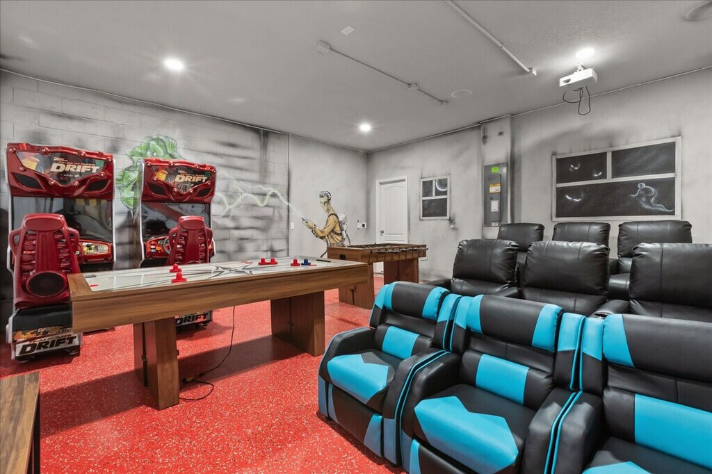 The advertised rate of $22,707/month is the lowest available price, based on a 1 month(s) stay with a move-in date of April 30, 2026. Rates vary depending on the duration of stay, season, and other parameters. For exact pricing and additional pricing components, please visit our website and enter your desired move-in and move-out dates. The rate is applicable when billed upfront; it can be higher if billed in multiple payments. Feel at home in this luxury 6-bedroom, 5.5-bathroom villa in Solterra Resort, comfortably sleeping up to 16 guests. It offers the perfect mix of luxury, comfort, and entertainment for an unforgettable stay. This villa features a fully equipped modern kitchen, an elegant dining area, and a comfortable living room. Enjoy ultimate entertainment with a private movie theater with reclining seats and a fully equipped game room with air hockey, foosball, arcade machines, and racing simulators. The private screened pool and spa, sun loungers, child safety fence, and BBQ grill provide your own Florida retreat. Guests who wish to use the resort amenities will be charged a one-time resort fee per stay, paid locally at the clubhouse. The fee is $35 for 1–12 guests and $45 for 13+ guests. Pool heating is available for $35 per day and is required for the entire stay. Up to 2 dogs are welcome for a $150 pet fee. Located in a peaceful and well-maintained community in Kissimmee, this home offers the perfect balance between relaxation and convenience. The neighborhood is family-friendly and quiet, ideal for guests looking to unwind after a day of exploring Central Florida. Just a short drive away, you’ll find world-famous attractions like Walt Disney World Resort, Universal Orlando Resort, and SeaWorld Orlando. The area is also close to a variety of restaurants, supermarkets, and shopping centers. Golf lovers will appreciate nearby courses, while nature enthusiasts can explore local parks and scenic walking areas. The villa is located at 7618 Oakmoss Loop, Davenport, FL, and you’ll be just minutes away from Animal Kingdom (~15 minutes), Hollywood Studios (~18 minutes), EPCOT (~20 minutes), Magic Kingdom (~20–22 minutes), Universal Studios Florida (~30 minutes), Islands of Adventure (~30 minutes), SeaWorld (~25 minutes), Aquatica Water Park (~25 minutes), Disney Springs (~20 minutes), Orlando Vineland Premium Outlets (~25 minutes), International Drive (I-Drive) (~30 minutes), and Orlando International Airport (MCO) (~35–40 minutes). Guests are responsible for refilling the BBQ propane tank. Please keep your pets leashed outside, never leave them unattended in the home unless crated, and clean up after them. During the winter season (Dec 21 - Mar 20), if the external temperature is too low, the pool heating may not reach expected levels. Also, please avoid using the pool during cold or rainy weather. [SI]