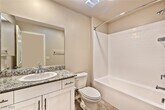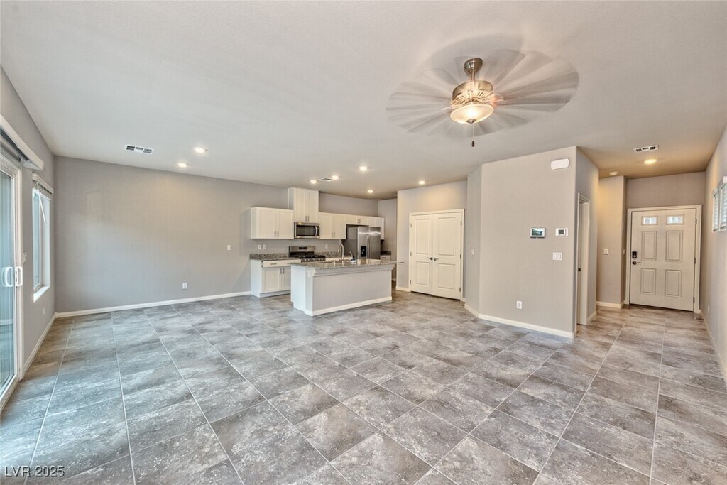 Beautiful two-story 4-bedroom home that perfectly blends modern design, comfort, and functionality. Step inside to an inviting open-concept floor plan featuring a spacious living area with stylish grey tile flooring throughout and a sleek custom ceiling fan for a contemporary touch. The chef-inspired kitchen boasts elegant granite countertops, a stainless steel undermount sink, custom cabinetry, recessed lighting, a large island for casual dining, stainless steel appliances, and a generous pantry for all your storage needs. Upstairs, the primary suite offers a relaxing retreat complete with an upgraded ceiling fan, plush comfort, and a beautifully appointed ensuite bath showcasing dual vanities and granite countertops. Enjoy a private backyard currently being professionally landscaped—ideal for outdoor entertaining. This immaculate home offers modern luxury and won’t last long!