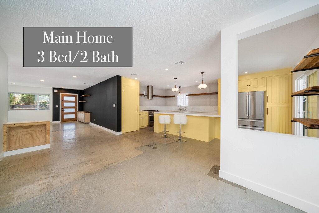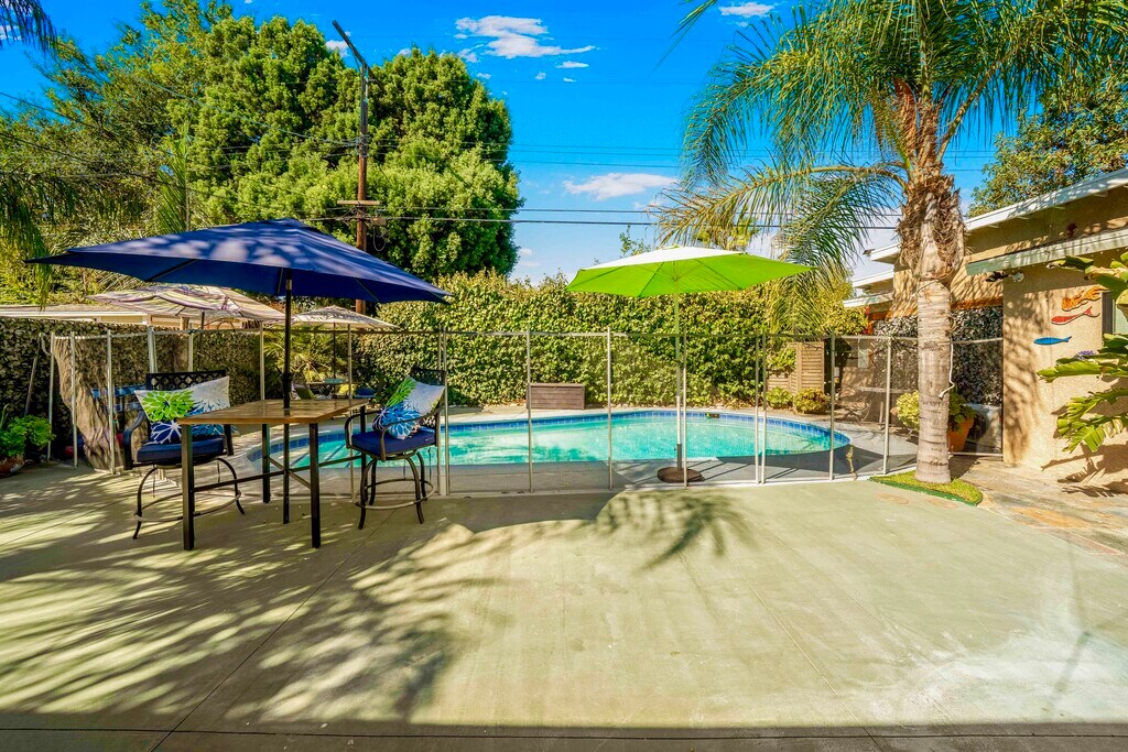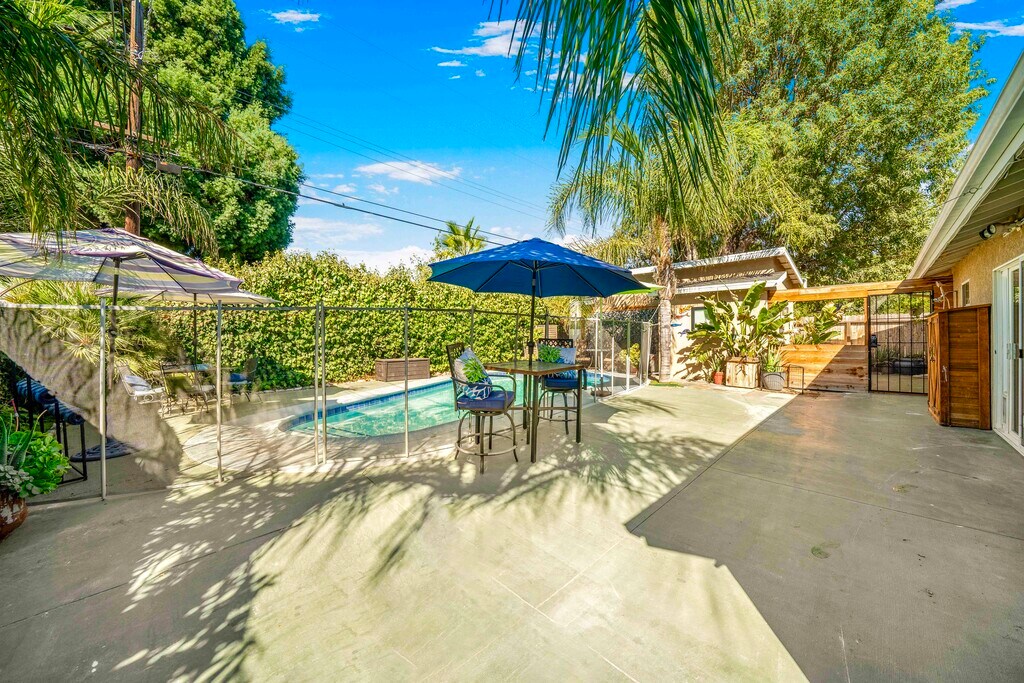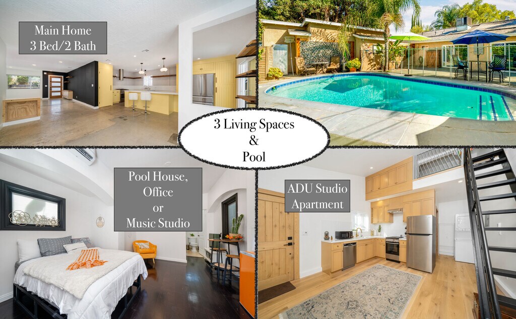 Beautifully updated single-level home featuring: Bright open floor plan Polished concrete floors Large windows and abundant natural light Remodeled kitchen with grand island + 36" chef's stove Spacious primary suite with slider to the pool area Seamless indoor outdoor flow with two oversized sliders Outdoor Living Sparkling pool with outdoor shower Removable pool safety fence (store or reinstall as needed) Fenced front yard with usable outdoor space Great layout for relaxing, hosting, or outdoor enjoyment Detached Studio Approx. 200 sq ft A fully separate flexible space featuring: Full bathroom Kitchenette Private entry Perfect as an office, studio, gym, workspace, or guest retreat (non-bedroom). Garage ADU Approx. 400 sq ft A versatile converted space offering: Full kitchen with 24" electric stove Full bathroom Loft area suitable for storage, meditation, or light-use activities Independent entry Ideal for a dedicated workspace, creative suite, or project room. Three Independent Flex Spaces This property offers: A full 3-bedroom home A fully equipped ADU A detached poolside studio with bathroom A rare combination in Los Angeles, perfect for anyone who values privacy, flexibility, and separate areas for work, creativity, or guests. Location Situated in a quiet, well-kept Northridge neighborhood conveniently close to: CSUN Shopping Cafes & dining Parks & recreation Major commuter routes Schedule a Tour Homes with this much flexibility and functional space are extremely hard to find in the Valley. Contact us today to see this exceptional property in person.