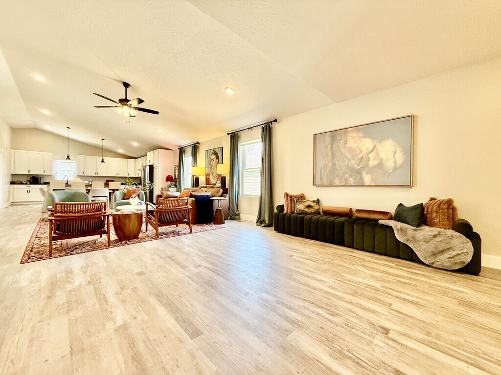 Welcome to West Chester, Ohio; a true hidden gem located in Butler County! Enjoy a scenic day in this beautiful town, full of heart. Our home is brand new and has so much to offer! A blend of comfort, style, and convenience greets you as soon as you enter our newly built ranch home. While decorating this inviting retreat, we have worked hard to create a home away from home feeling for our guests. The open-concept floor plan in the living space allows room for many guests. Everyone in your group will have room to mingle and relax. The living area is the home's heartbeat, successfully combining the relaxing living room with an inviting dining area and a fully equipped kitchen. Large windows allow plenty of natural light to illuminate the space throughout the day. The new carpet, laminate flooring, and tasteful décor create a feeling of warmth and coziness. Five comfortable bedrooms are designed to offer all the rest you need after a long day of exploring the exciting city of West Chester. The home offers relaxation and comfort, and we can't wait for you to experience it for yourself. ? LIVING ROOM ? The living room is a part of the contemporary open floor plan. See what the chef is up to, help them set the table, or unwind on the cozy sofa with a good book. ? Comfortable Leather Sofa ? 75 Inch Smart TV ? Coffee Tables ? Reading Lamps ? KITCHEN & DINING ? Even the most demanding chefs would enjoy preparing delicious meals using numerous state-of-the-art cooking appliances. In addition, spacious countertops provide plenty of workspaces for you to prepare delicious homemade delicacies. ? Microwave ? Stove ? Oven ? Toaster ? Refrigerator/Freezer ? Keurig Coffee Maker ? Dishwasher ? Sink - Hot & Cold Water ? Trays ? Glasses ? Silverware ? Pots & Pans Serve those delicious meals on the adjacent dining table and let the smell of freshly cooked homemade delicacies invite everyone over for a tasty feast. If you don't feel like cooking, you can always check out one of the many nearby restaurants in the area. ? Dining Table with Seating for 6 ? SLEEPING ARRANGEMENTS - 5 BEDROOMS ? Three tastefully furnished bedrooms are designed to provide hotel-like comfort and convenience needed to relax and rest so you can remain energized and do everything you have planned the next day. ? Master Bedroom: King-Size Bed, Ensuite Bathroom ? Bedroom 2: Queen-Size Bed ? Bedroom 3: King-Size Bed ? Bedroom 4: Queen-Size Bed ? Bedroom 5: Queen-Size Bed All bedrooms are equipped with a similar set of amenities. ? Premium Pillows, Linens, and Sheets ? Closets with Hangers and Shelves ? Dressers with Spacious Drawers ? Night Stands with Reading Lights ? 55-inch Smart TV in all bedrooms ? BATHROOMS ? As you already know, the master bedroom features an ensuite bath. Another full bathroom caters to the additional bedroom and the living area on the main floor. Another full bathroom in the lower level which caters to the three bedrooms and family area. You don't have to worry about packing towels or essential toiletries, as we have already prepared these for you. ? Bathtub with a Shower ? Vanity ? Mirror ? Toilet ? Towels ? Hair Dryer ? Essential Toiletries Let us know if you have any questions regarding this beautiful home. We are more than happy to assist!