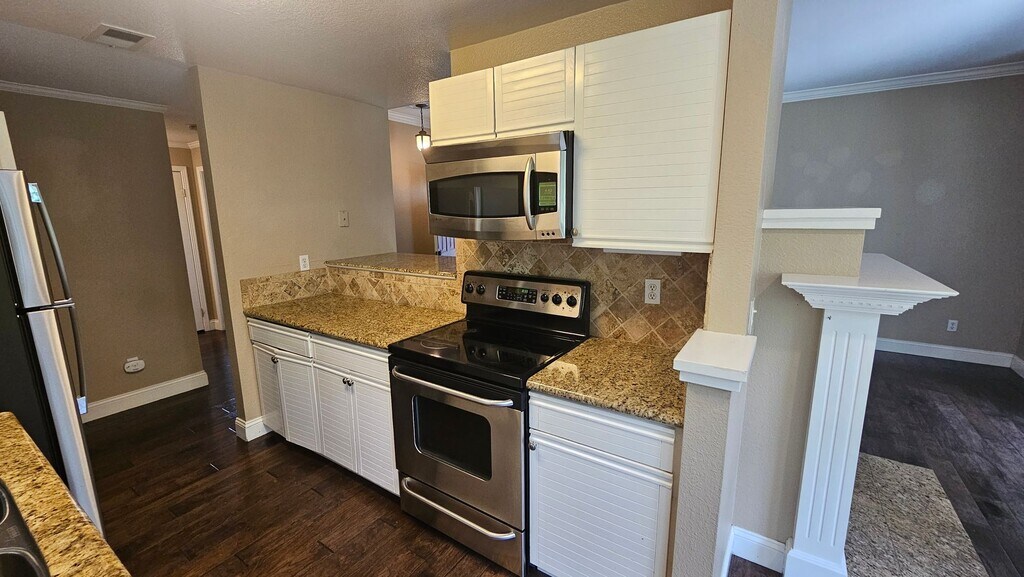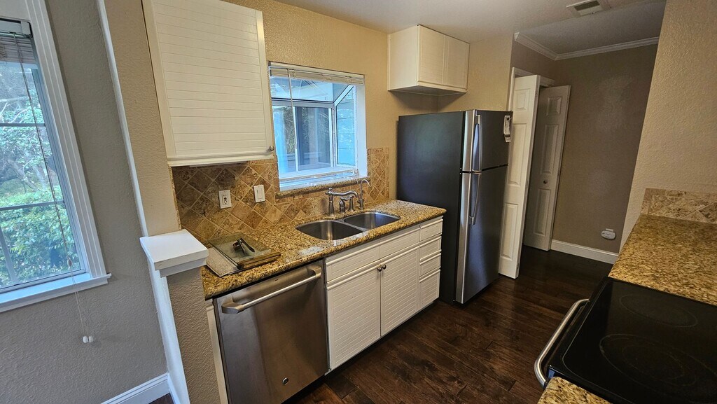 This ground floor condominium home is nestled in the lovely Canyon Meadows community of Pleasanton. Located on the QUIET south side of the property facing lovely green hills with the babbling brook below. This home features many beautiful updates including granite surfaces, contemporary wood flooring in the living areas, custom carpeted bedrooms, tile flooring in bathrooms, antique bronze hardware throughout including bathroom fixtures and knobs, beautifully appointed kitchen with granite counters and stainless appliances. Two spacious balconies facing views, extra storage and one garage and one reserved space. Located just minutes from the 580 freeway, Stoneridge Mall, and Foothill High School. HOA amenities include a community pool, jacuzzi, beach volleyball court, tennis court, basketball court, and much more! This is a single story unit with exterior stairs that lead from the 1 car garage to the entrance. Available Now. 1 year lease. No Smoking. Owner Pays for HOA Dues, Water & Garbage. Tenant pays PGE Requirements: 3x monthly rent in income (gross) and clean credit and rental history This property is managed by Summit Properties Group, Inc. DRE# 01517753. 11750 Dublin Blvd. Ste. 203, Dublin, CA 94568 . Office Hours M-F, 9-5.