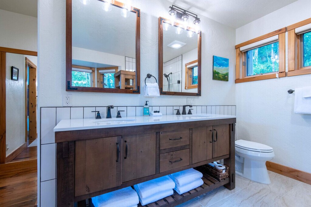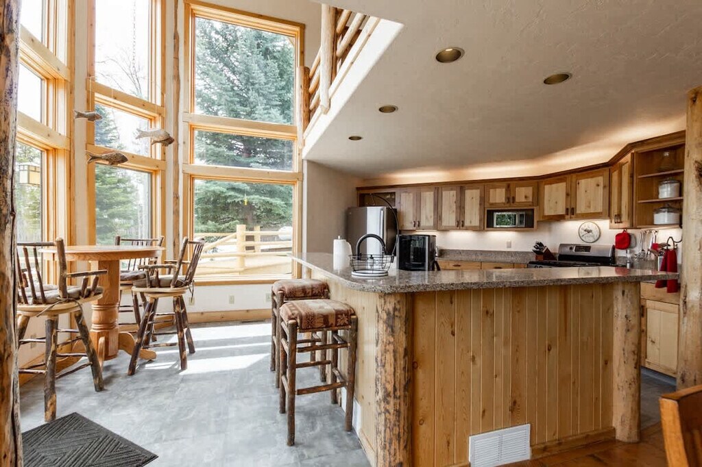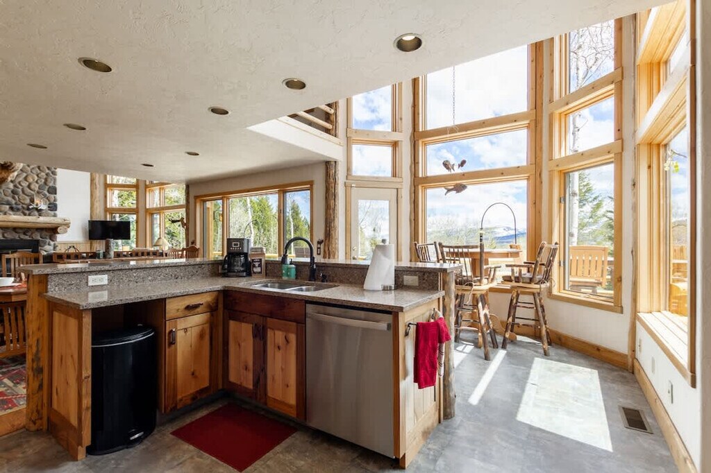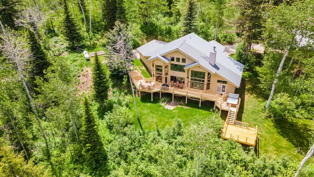 Welcome to your private mountain estate, an extraordinary 22-acre retreat nestled at the very end of the road in the Big Hole Mountains. Offering complete privacy and breathtaking views of the Teton Valley and the Teton Mountain Range, this luxurious multilevel home has been thoughtfully designed and updated to create a serene escape for families or groups. With central A/C, remodeled living spaces, and an unbeatable location, it's the perfect basecamp for Grand Teton, Yellowstone, and Jackson Hole. Step into a warm, sunlit space featuring a gourmet kitchen with everything you need, a cozy living area with a stone fireplace, and a beautifully remodeled primary suite. The primary bedroom boasts a king-size bed and an updated en-suite bathroom complete with modern fixtures and spa-like finishes. A versatile den with a queen/full futon serves as an office, game room, or extra sleeping space. A second bathroom and laundry are located nearby. The loft area offers a peaceful space perfect for remote work or relaxation, with a dedicated desk area and a bedroom with a queen bed. The fully remodeled lower level includes a stylish TV lounge, sleek shared bathroom, and two spacious bedrooms—one with a king and twin bed, the other with a queen. Enjoy movie nights, board games, or just relaxing after a day of exploring. Take in the incredible views from the expansive deck, with the Teton Range as your backdrop. After a day outdoors, relax in your private hot tub beneath a wide-open starry sky. With no neighbors in sight, this truly feels like your own private mountain sanctuary. This home serves as an ideal basecamp for exploring the stunning natural beauty of the area. Grand Teton National Park is approximately 45 minutes away, Yellowstone National Park is just under 2 hours, and Jackson Hole, Wyoming, is about an hour's drive. Explore the Teton Valley and beyond with activities such as floating the Teton River, biking and hiking at Grand Targhee Resort, and fly fishing in the Teton River and Henry’s Fork. Enjoy local flavors by sipping a beer at Grand Teton Brewing or dining al fresco at Guidepost. The home features elevated spaces and open railings, which may not be ideal for small children. The number of people at the property should not exceed the maximum sleeping capacity. Quiet hours are from 9 pm to 8 am, and no events such as parties or large gatherings are allowed. No smoking or vaping is permitted in the home or on the decks, and an additional charge will be applied if any butts are found on the property. Please turn all exterior lights off at night to preserve the beauty of the dark skies. A maximum of four licensed vehicles is allowed in the driveway and garages. No riding snow machines, dirt bikes, or ATVs in the subdivision or at the rental property. Please do not burn candles or incense in the home and no fireworks on the premises. Keep all main entry doors locked when not occupied. Fines will apply for violations including but not limited to: leaving garbage in the house or litter on grounds, failure to disclose or clean up after pets, smoking in house or garage, failure to follow house rules and respect posted signs, failure to follow check-out procedure, mistreatment of hot tub, or violations of local laws. A minimum $500 fine for smoking, vaping, or marijuana use in the house or garage, violation of house rules, posted signs, laws, or failure to vacate at check-out time. Includes a dedicated desk area in the loft, perfect for remote work or relaxation. A laptop computer is not included.