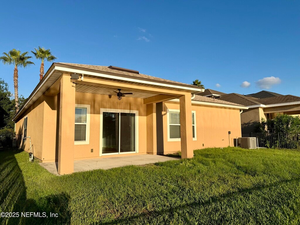 Move in today to this beautiful 4-bedroom,2-bathroom home located on a pond in the desirable Whitfield neighborhood of Oakleaf Plantation. Inside,you'll find an office/flex space with hardwood floors,a spacious kitchen featuring granite countertops,stainless steel appliances,and a large island with bar seating. The family room also boasts hardwood floors and opens through sliding doors to a covered porch overlooking the pond and a fully fenced backyard. The large primary suite offers a walk-in closet and an ensuite bath with dual vanities,a soaking tub,and a separate shower. MLS# 2113922