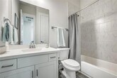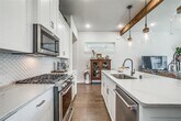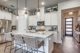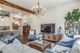 A welcoming entry leads you to the open concept living with a gourmet kitchen with quartz counters, stainless appliances and gas range, upgraded cabinetry and tile, and huge island with breakfast bar all open to the living and dining rooms. A handsome wood ceiling beam brings character to the space and picture frame molding in the dining room adds sophisticated elegance. Builder grade lighting has been replaced with designer chandeliers and pendants. The cozy backyard has been improved with artificial turf for easy care. The upstairs master retreat has a balcony, spa like bath, & custom closet. Two additional bedrooms and a loft complete the second floor. Super efficient and Green Certified too. Refrigerator, washer and dryer included! Merion at Midtown is ideally located near fabulous shopping and dining, Presbyterian hospital, Downtown and Midtown. Gated entry, an infinity pool, cabanas, grill