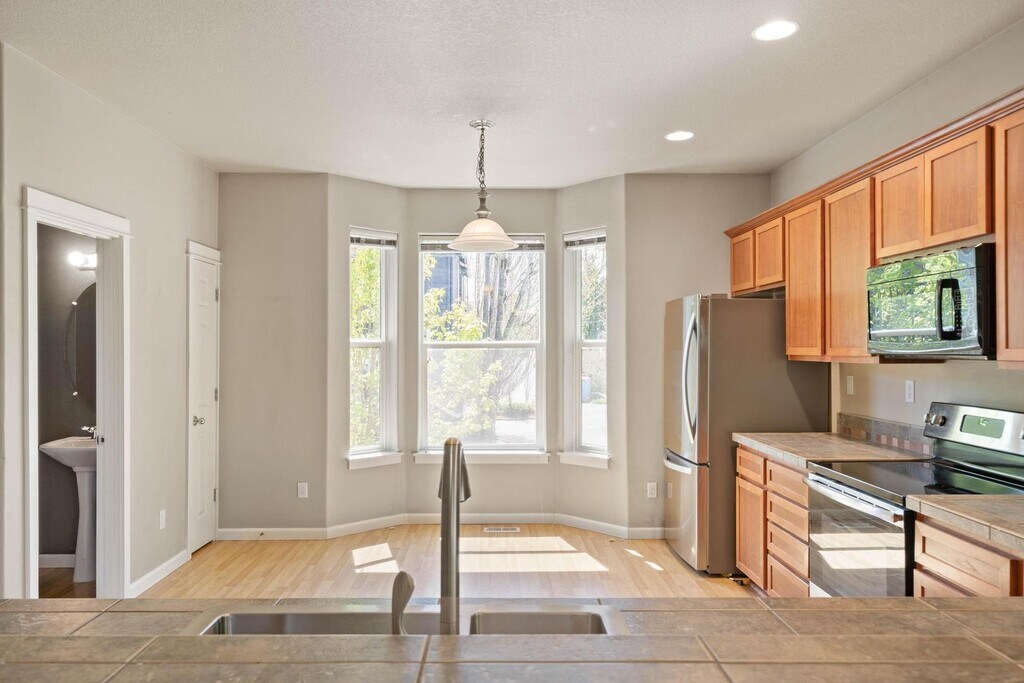 This bright and spacious 3-bedroom/2.5 bath townhome in Tigard offers comfortable, quiet living in a peaceful, scenic neighborhood, and great perks. Step into the small entryway and take the door just ahead into the two-car tandem garage with shelving and extra storage. Back at the front door, take the stairs up to the open-concept, carpeted living/dining area, well-lit with lots of natural light, thanks to plentiful, large windows. The living area has a warming gas fireplace and a balcony overlooking a lovely wooded nature area. The dining area leads you to the kitchen with plentiful, earthy wood cabinets, big bay windows, and attractive tile backsplash and countertops. Take another flight of stairs up to top level where you'll find the laundry area and comfy bedrooms—one with a big walk-in closet and ensuite bath. Extras and updates include: an EV charger, HVAC upgrades in 2022 The location is ideal, close to I-5 and freeway 217 for quick and easy trips into downtown Portland. You'll be close to Costco, grocery stores, and other shopping. You'll have easy access to walking trails near and parks nearby. Pet policy: Pets not allowed Smoking policy: Smoking of any kind prohibited on entire premises Tenant pays for electricity, gas, and garbage. Water/sewer will be billed back to tenant, and tenant maintains exterior. - SECURITY DEPOSIT?The security deposit for this property will be at least equal to one month’s rent. Based on the results of the tenant screening process, an additional security deposit may be required. If applicable, the additional amount will be: * An extra half-month’s rent for properties located within Portland city limits * An extra full month’s rent for properties outside Portland In addition, a $500 pet deposit is required for each pet, when applicable. Emotional Support Animals (ESAs) are exempt from pet deposits. - At Scout Rentals, we strive to provide an experience that is cost-effective and convenient. That’s why we provide a Resident Benefits Package (RBP) to address common headaches for our renters. Our program handles air filter delivery, utility set up, credit building, identity protection, rent rewards, and more at a rate of $26.50/month, available to every eligible property upon resident election. Residents have the option to personalize some components during onboarding, which may increase or decrease the monthly amount. In addition to RBP, we provide access to liability insurance that meets your needs. More details upon application. More details upon application. - Scout uses a third party screener for all applicants to our available properties. Screening takes an average of three (3) business days—with some taking more time and some taking less time, depending on the number of applicants and other varying factors. SCREENING FEES ARE NON-REFUNDABLE. - Scout uses a third party scheduler for tours of our properties. After you have scheduled your tour on Showdigs, they will send you an automated confirmation request about 4.5 hours before the tour and will wait for confirmation up to 2 hours before the tour. A final reminder will be sent to you 15 minutes before a potential cancellation. If you do not confirm within this timeframe, the tour is automatically canceled. PLEASE NOTE THAT EXACT TIMING MAY VARY DEPENDING ON THE LOCATION.
