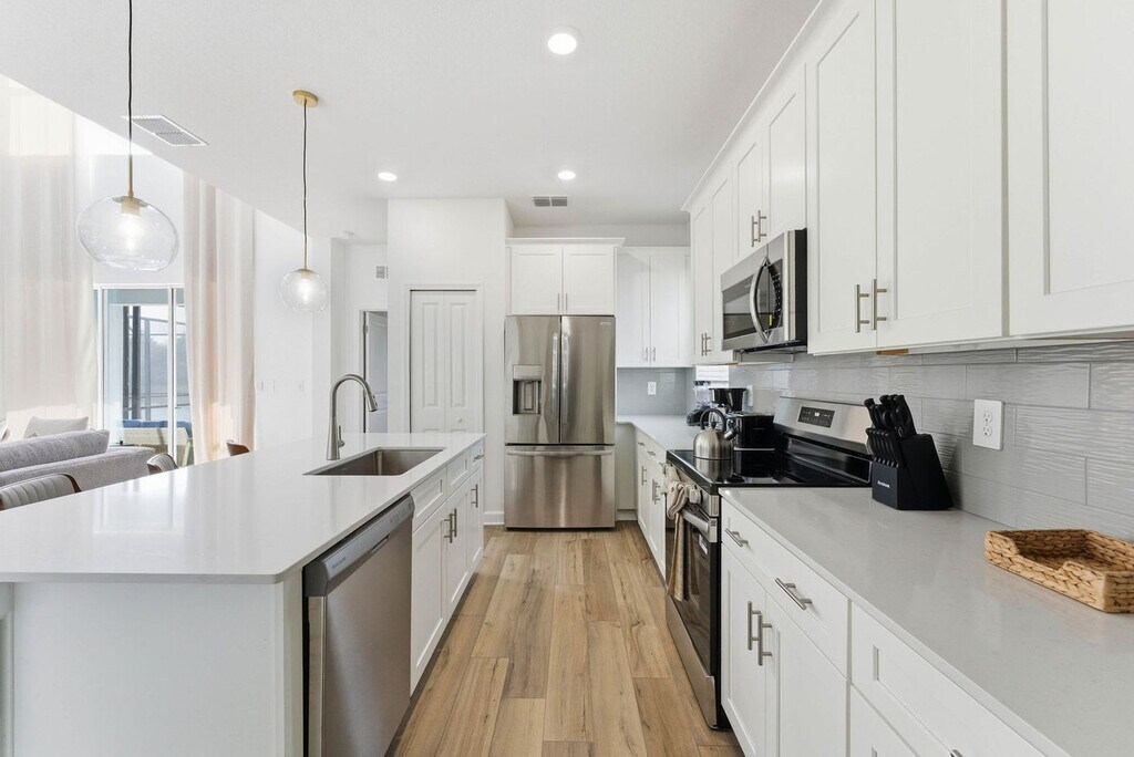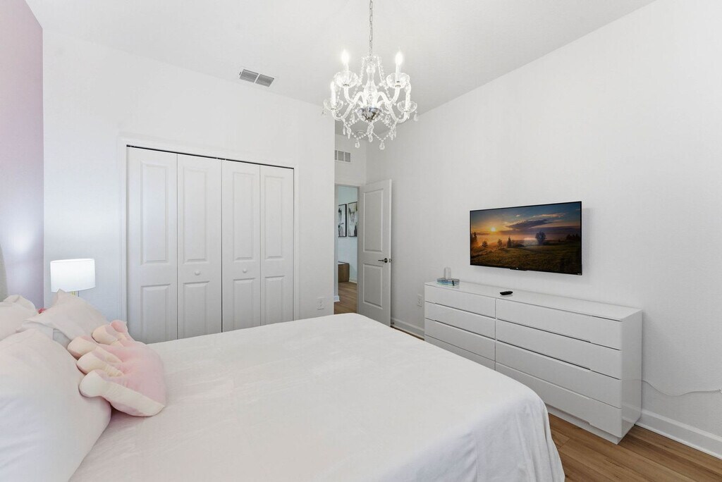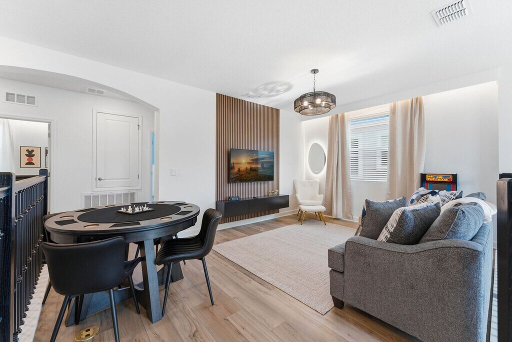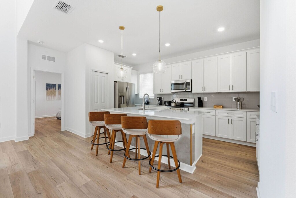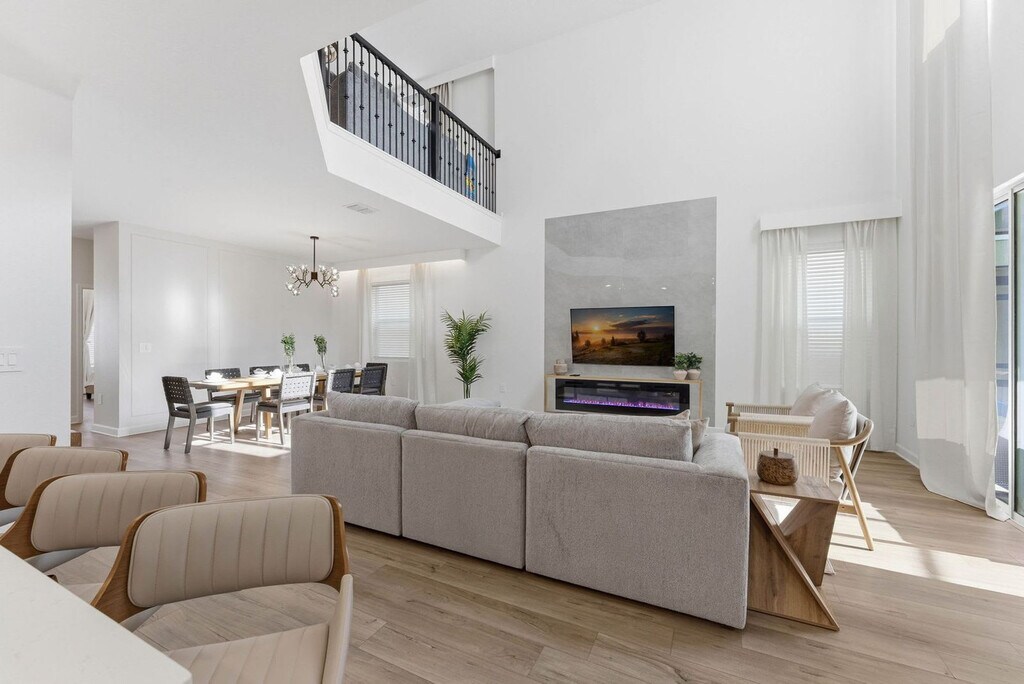 Feel at home in this chic and spacious 5-bedroom home in Reunion Resort, just minutes from Disney. This home offers comfort, style, and unforgettable memories. Experience elevated comfort and playful elegance in this stylish home, featuring chic modern decor, a spacious layout, and thoughtfully themed bedrooms. The bright and airy open-concept living space includes a fully equipped kitchen, dining area, and lounge that flow together seamlessly. A stylishly decorated family room upstairs invites movie nights and board games. Additional features include a full laundry room with a washer and dryer, and complimentary Wi-Fi. Pool heating and a barbecue grill are available for an additional fee. Reunion Resort is centrally located near Orlando's top attractions, shopping, dining, and entertainment. It's just minutes from Walt Disney World with easy access to I-4. Quiet hours are between 10 PM and 8 AM. No smoking and no pets are allowed. [SI]