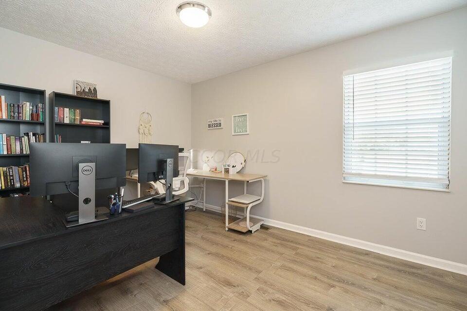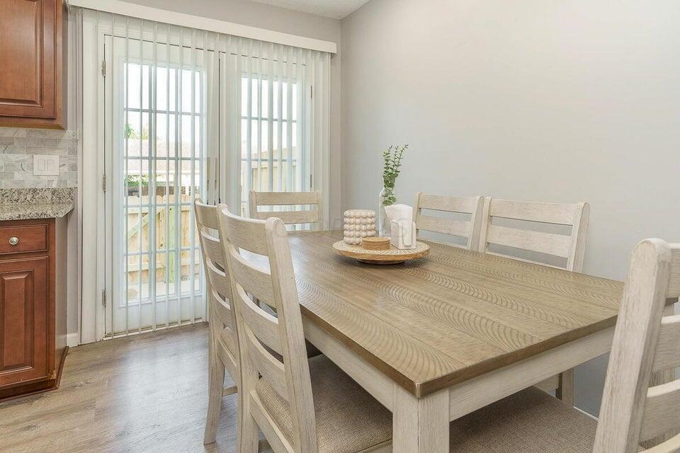 Located in the highly sought-after Millcreek Commons community and the top-rated Dublin City School District,this beautifully updated 2-bedroom,1.5-bathroom end-unit condo offers over 1,200 square feet of modern living space,including a partially finished basement perfect for a home office or recreation room. The interior has been completely refreshed with luxury vinyl plank flooring throughout the entire home,providing a durable,high-end look that complements the fresh paint and recessed lighting. The open-concept kitchen is a chef's dream,featuring granite countertops,a custom tile backsplash,newer stainless steel appliances,and a massive walk-in pantry. To make your move even easier,water,sewer,and trash fees are all paid by the owner,leaving you with fewer monthly bills to manage. Residents will also enjoy the convenience of an assigned covered carport,a private fenced-in rear patio for outdoor relaxation,and a prime location just minutes from Sawmill Road,I-270,Bridge Park,and local parks.