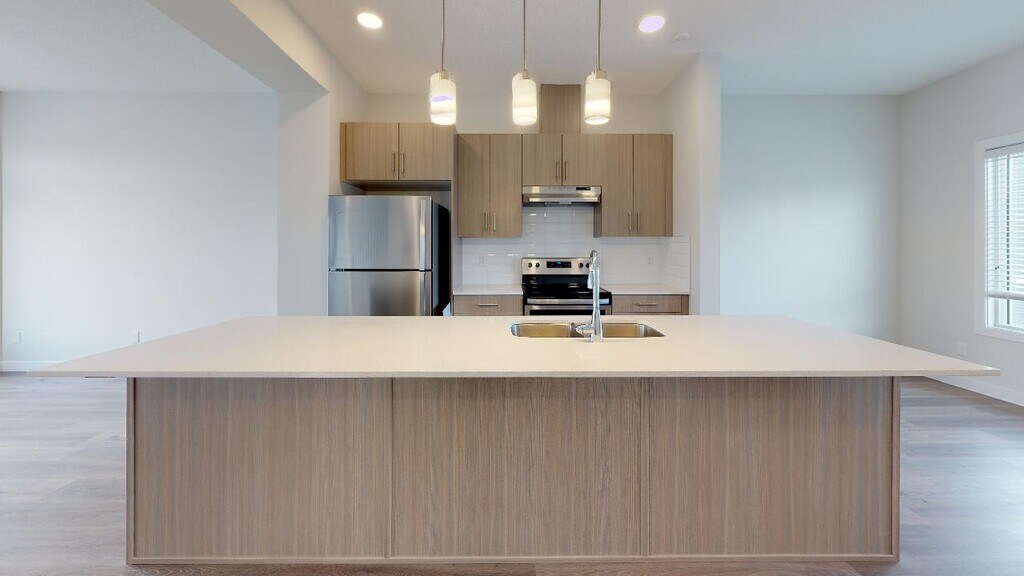 Gorgeous end unit townhouse in Lewis Greens, West Edmonton. 3 bedrooms, 2.5 bathrooms, 1350 sqft, double garage. RENT: $1,949. Security Deposit $ 1,949. Available Nov 19 2025 Utilities not included. No Pets, unless it is a service animal. 3 Bedrooms. 2.5 Bathrooms. 1,350 Sqft. Double Garage. Quartz Countertops throughout. Stainless Steel Appliances. Window coverings included. Vinyl Plank Flooring & Carpet. 9-foot ceilings. Insuite Laundry. Open Concept Layout. Modern colors throughout. Phenomenal location. 5 minutes to the Henday, one minute to 87th ave. Close to three different commercial shopping centers. Walking distance to Bishop David Motiuk School. Public transit right out front. 10/10. Super high-efficiency units, cut back on utility costs!. On-demand hot water heaters & a heat pump. Book a viewing today! email: www.maxwellhorizon.ca/residential