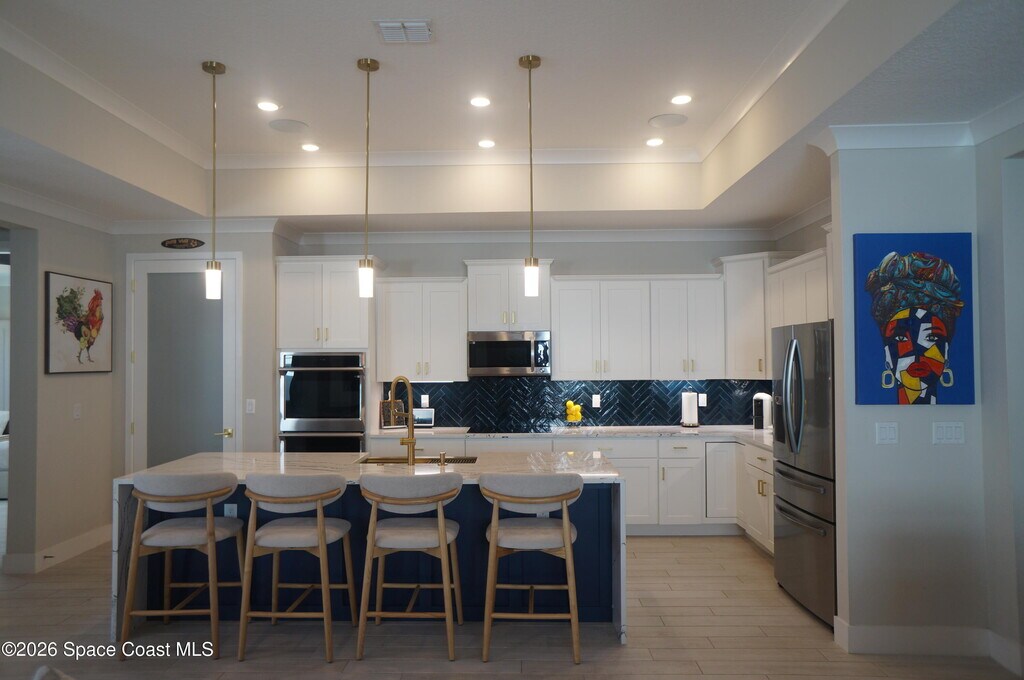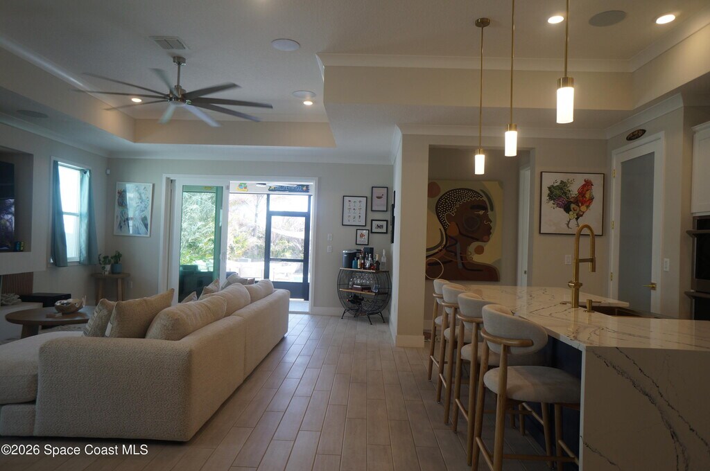 Beautiful 4-bedroom,3-bath pool home located in the heart of Satellite Beach,just minutes from the Atlantic Ocean. This stunning property offers the perfect blend of coastal living and modern comfort. Enjoy your private in-ground pool,spacious patio,and outdoor kitchen complete with grill and flat screen TV,perfect for entertaining family and friends. Inside,the home features custom ceiling speakers throughout,creating a true movie-theater sound experience. The spacious primary suite offers a luxurious retreat with a walk-in closet,his and hers sinks,jacuzzi tub,and a stunning overhead rainfall shower. The chef's kitchen includes stainless steel appliances,double oven,a large island,and an oversized pantry ideal for storage and cooking. Located near top-rated schools including Sea Park Elementary,DeLaura Middle,and Satellite High School. Enjoy quick access to Hightower Beach Park,local restaurants,cafes,and popular beachside dining spots. With a 2-car garage MLS # 1071373