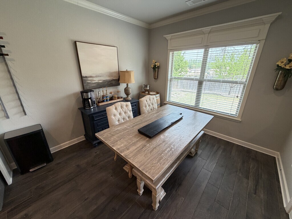 Beautiful 4 bedroom, 2 bathroom all brick house in the highly desired Shadow Creek subdivision. This house is equipped with a 6-8 person STORM SHELTER in the garage! High ceilings, luxury vinyl plank and wood-like tile flooring throughout (no carpet), granite countertops, gas stove, stainless steel appliances - refrigerator INCLUDED, bricked fireplace and multiple oversized windows for tons natural light! The primary bathroom has dual vanities, a soaker tub, walk-in shower and a built-in dresser. The large backyard boasts a privacy fence and a smaller fenced mulch area for multiple uses. Sit in comfort under the covered patio while entertaining or unwinding at the end of the day. Only minutes from schools, parks, shops and the interstate for quick commute to both LRAFB and Searcy. This upscale rental in the Cabot school district is a rare find so act quickly!