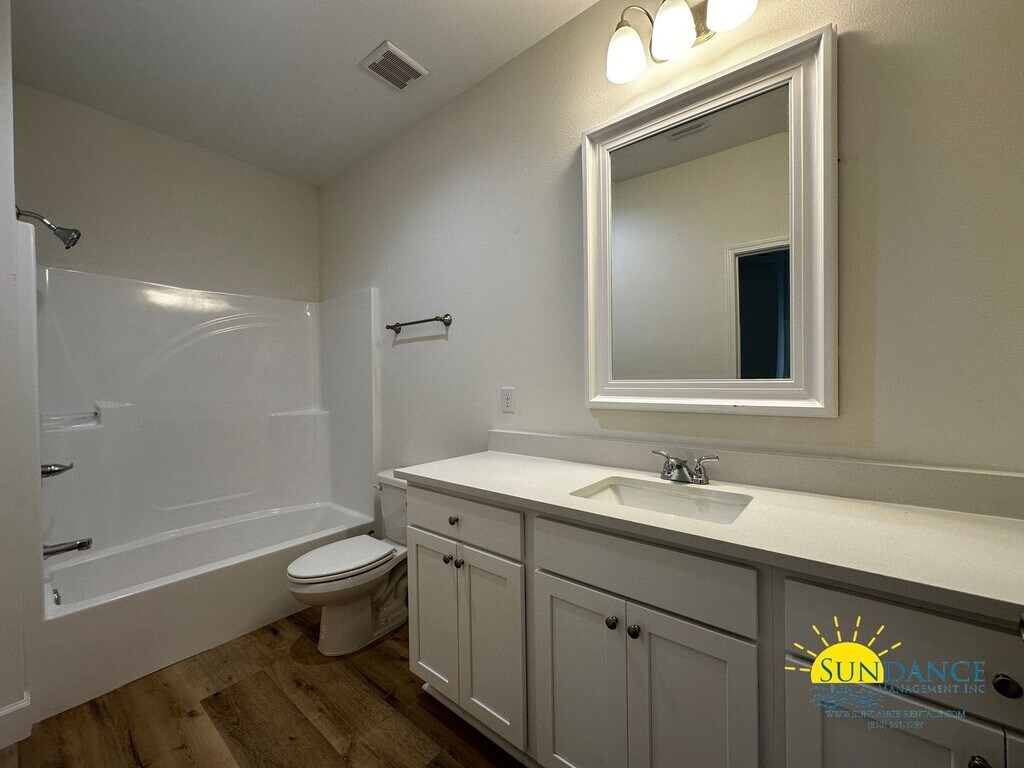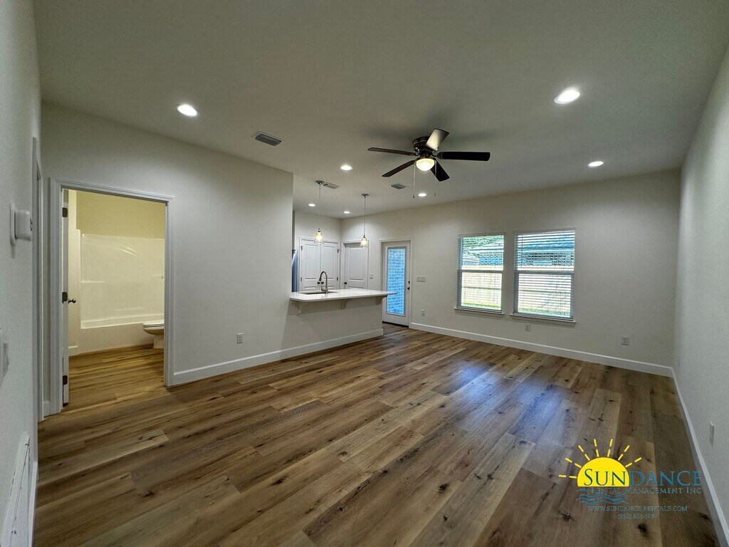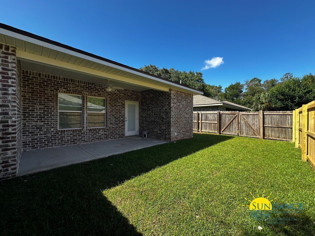 Located in Fort Walton Beach conveniently close to Beal Parkway, Racetrack Road, shopping, and dining this lovely new construction 2 bedroom, 2 bathroom duplex offers 2 Car Driveway and is a true must-see! With a split bedroom floor plan, this unit offers ample space in the main living areas while allowing privacy for the bedroom. The interior features a spacious living room with beautiful hardwood floors, a full kitchen with a pantry, stainless appliances, granite countertops, and a breakfast bar, a roomy primary suite with dual vanity, another good-sized bedroom, an additional full bathroom, and a laundry room with washer and dryer hookups. Outside you will enjoy a great backyard with a full privacy fence and a covered patio perfect for relaxing or entertaining guests. You do not want to miss the chance to call this wonderful unit home! Lawn care included. Pets max 2 may be accepted with a $300 per pet non-refundable pet fee (Subject to Owner Approval). No smoking is permitted.