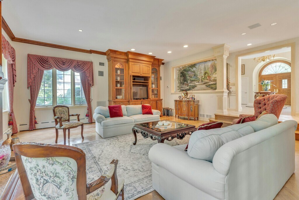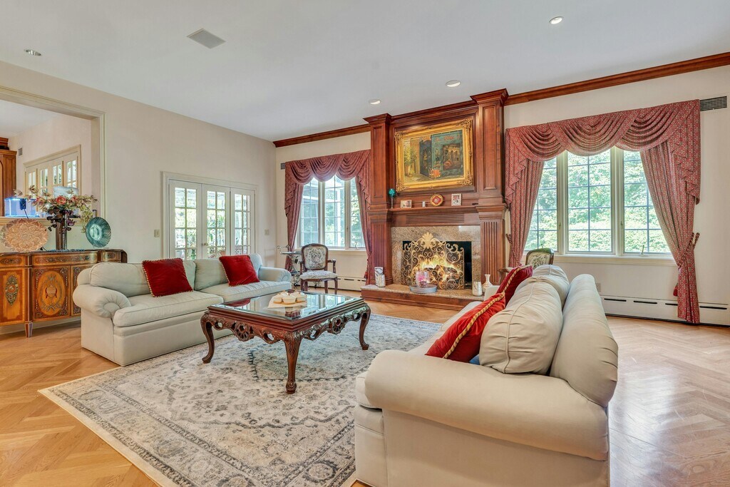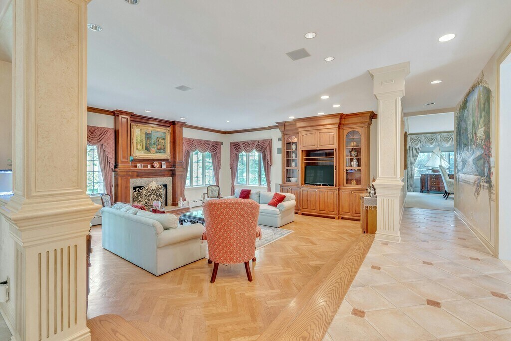 This captivating home features a luxurious 2-story entry with elegant marble floors and a circular staircase. Formal living & dining rooms, family room with fireplace, office/library, a spacious kitchen & dinette area. Additionally, there is a convenient 1st-floor laundry room, 2 powder rooms, a heated 3-car garage, a delightful conservatory/sunroom with AC & a serene blue stone patio. Second floor offers a primary suite with a sitting area & fireplace, a spacious bathroom with a shower, jacuzzi and double sinks, and 3 additional bedrooms with 2 full bathrooms. The finished basement includes 2 bedrooms, 2.5 bathrooms, a sauna/steam room, a wine cellar, and an exercise area. Circular driveway, ample closet space, and much more. Tenants Pay $300 of each Repair & responsible for snow plowing. 24 hours notice for showing appointments. Pictures were taken in 2024.
