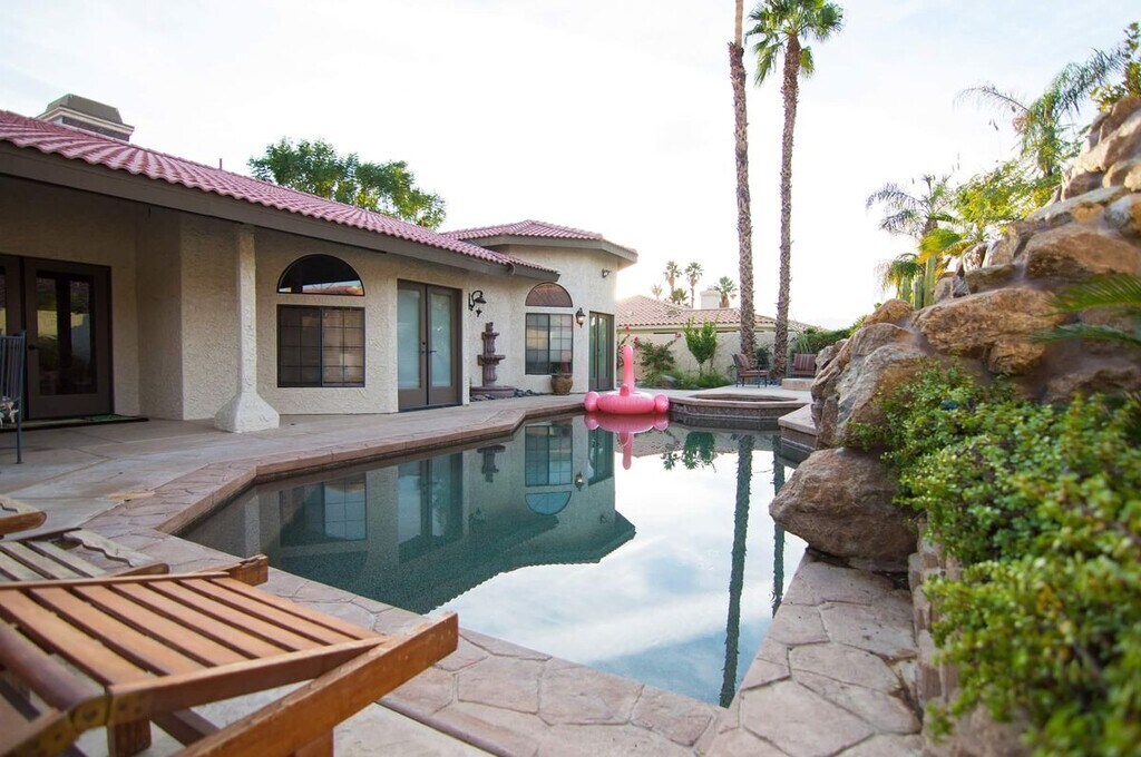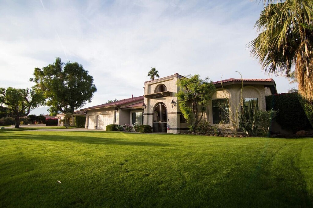 Stunning Mediterranean Estate in Bermuda Dunes Country Club | 4BD/2.5BA | 2,721 SqFt | $4,500/Month Welcome to this breathtaking Mediterranean-style home nestled in the exclusive gated community of Bermuda Dunes Country Club. From the moment you arrive, the dramatic arched entryway, warm exterior lighting, and lush manicured lawn set the tone for the elegance that awaits inside. Step through the grand entrance into an expansive open-concept living area featuring soaring vaulted ceilings, a cozy fireplace, and a large flat-screen TV — perfect for relaxing after a day in the desert sun. The generous living space flows seamlessly into the dining area, making this home ideal for both entertaining and everyday living. The gourmet kitchen is a chef's dream, boasting rich custom wood cabinetry, stunning granite countertops, a 5-burner gas cooktop island, stainless steel appliances including a built-in refrigerator, and a charming stained glass accent window that adds a one-of-a-kind artistic touch. This beautifully furnished home offers 4 spacious bedrooms and 2.5 bathrooms across 2,721 square feet of comfortable desert living. Step outside to your own private paradise — a spectacular backyard retreat complete with a sparkling pool and relaxing jacuzzi, perfect for soaking up the gorgeous Coachella Valley sunshine. Property Highlights: 4 Bedrooms | 2.5 Bathrooms | 2,721 SqFt Fully furnished — just bring your suitcase Gourmet kitchen with granite island & gas cooktop Vaulted ceilings & open-concept living Private pool & jacuzzi Lush landscaping & manicured front lawn 3-car attached garage Located in the gated Bermuda Dunes Country Club community Close to world-class golf, dining, shopping & Joshua Tree National Park Rent: $4,500/month Don't miss your opportunity to live in one of the Coachella Valley's most sought-after communities. Schedule your showing today!