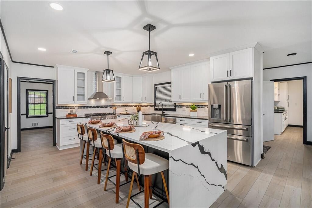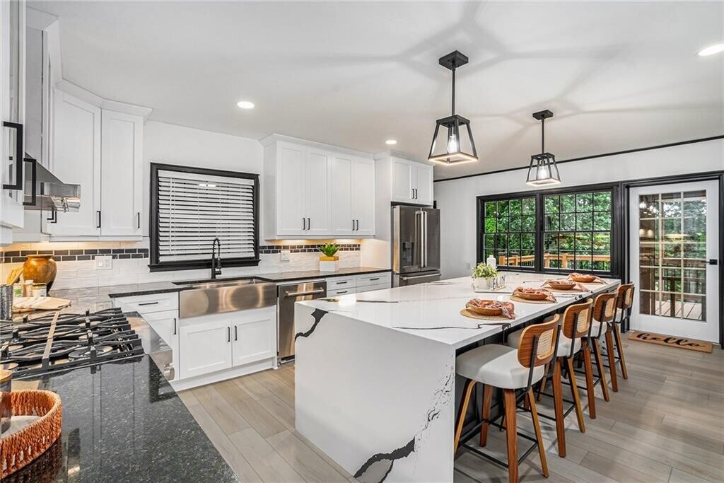 Mike CherwenkaGORGEOUSLY RENOVATED! Live the lake life! This isn't just a home - it's a lifestyle upgrade. Located just minutes from Lake Lanier, Olympic Park, and downtown Gainesville's dining, shopping, and entertainment, this sexy modern renovation blends high-end design with everyday comfort: Open concept living with statement fireplace and feature wall. Chef's kitchen with quartz counters, subway tile, glass-front cabinets, and premium stainless appliances (yes, even a French 4-door fridge!) Oversized primary suite with spa-inspired bath: marble-tiled shower, soaking tub, and custom walk-in closet. Finished basement with second kitchen and full bath = perfect for guests or in-laws. Third-floor flex attic space for gym, studio, or playroom. Brand-new 2-car garage with driveway turnaround + extra storage. Outdoor living goals: 1-acre lot with screened patio, spacious deck, and private, fully privacy-fenced backyard ready for parties, pets, or peace and quiet. Walk to Wessell Park for pickleball, tennis, and more. This home delivers style, features, and location - all in one. Come see why this one's built for your next chapter.