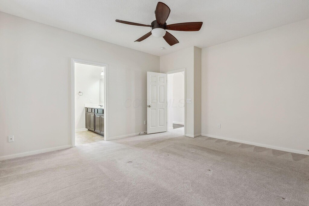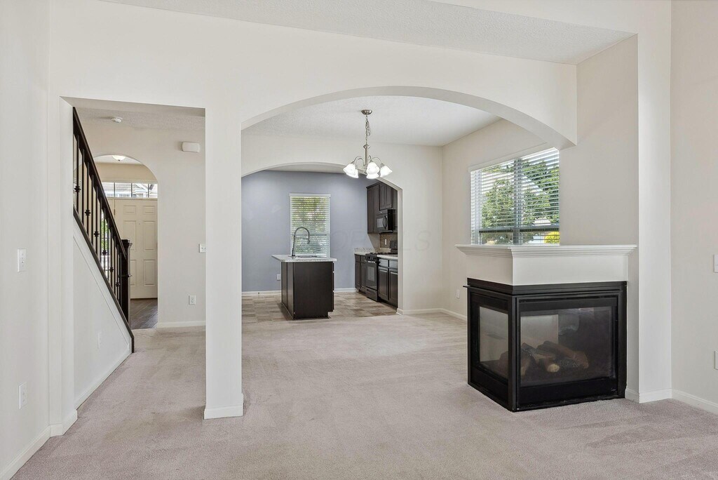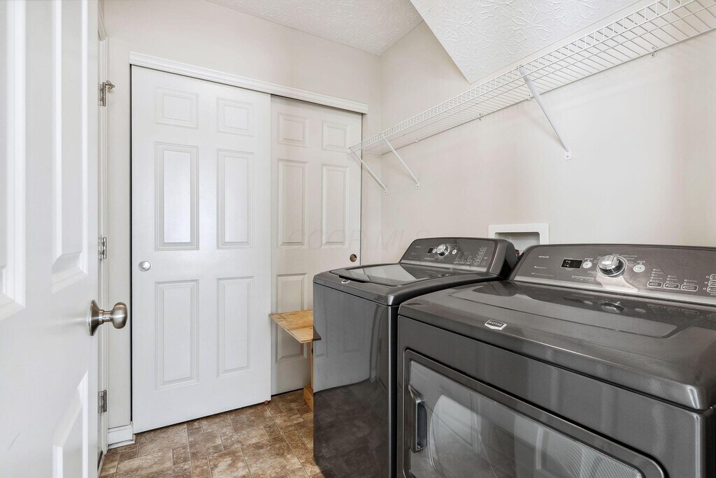 M/I built home with open floor plan,freshly painted interior,all new carpeting and an abundance of windows and natural light. First floor owners suite with spacious owners bath including dual vanity,tub and shower with newer tile and a walk-in closet. The open kitchen features brand new appliances,lots of cabinets for plenty of storage in addition to the pantry. The center island provides extra counter space. The dining area leads to the large great room with gas fireplace and access to the rear patio. The first floor laundry includes washer/dryer. The second floor includes 2 bedrooms with walk-in closets,a second full bath,and large bonus room.