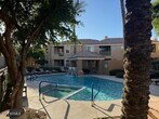 Single-level townhome located in a quiet gated community at the base of the mountain,split floor plan. Tile flooring throughout and a comfortable living area with fireplace and includes private garage,washer and dryer,and an outdoor patio ideal for relaxing. No interior steps,well maintained community offering peaceful surroundings and easy,low-maintenance living and a community pool.