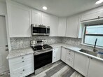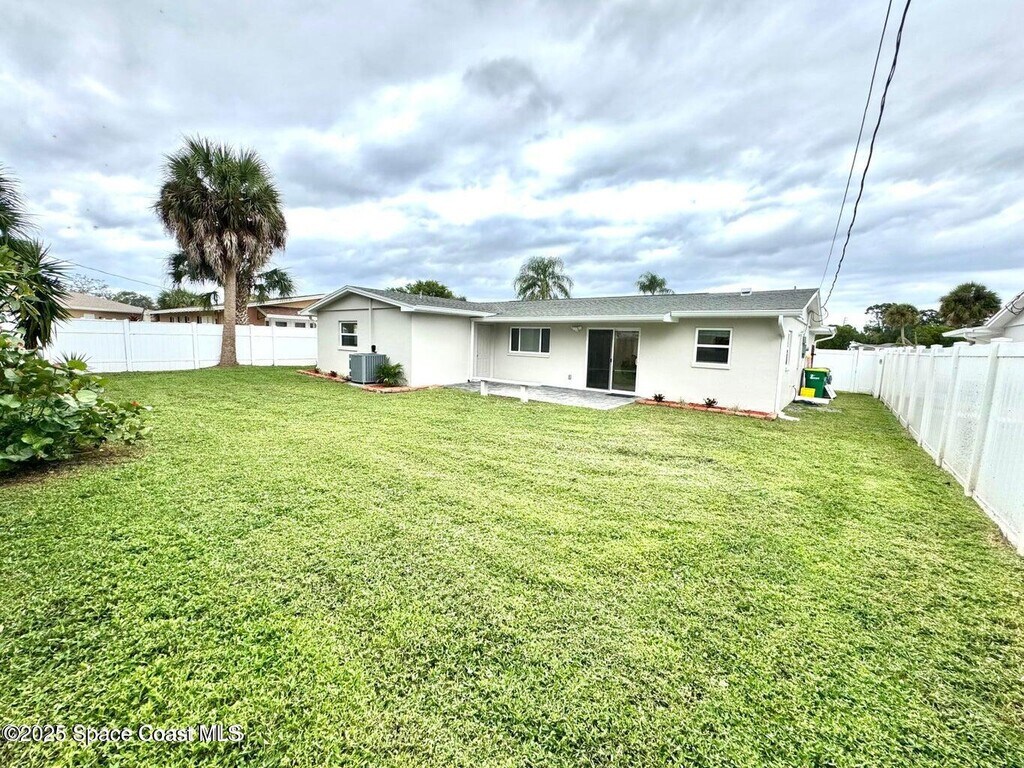 Fully renovated 3BR/2BA rental in Melbourne,FL. Bright open living and dining areas with updated LED lighting throughout. Kitchen features white Shaker cabinetry,Carrara marble countertops,and stainless steel appliances. Primary bedroom is privately located at the rear of the home with patio access and views of the fully fenced backyard. Ensuite bath includes a tiled walk-in shower with subway tile and modern vanity. Two additional bedrooms share a full bath with tub/shower combo. Additional features include newer A/C and water heater,full-size stackable washer and dryer,brand-new rain gutters,one-car garage,and fenced yard. Impeccably clean,move-in ready,and conveniently located near shopping and dining.