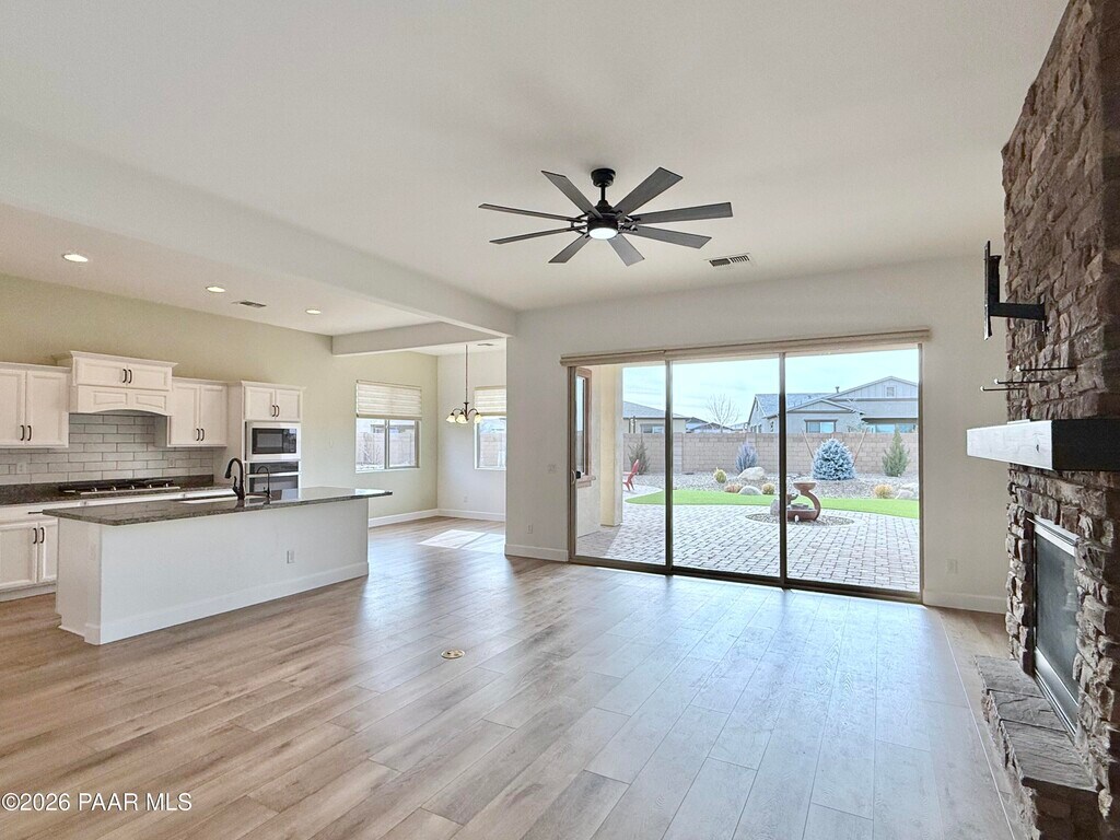 Spacious Open-concept,Extra large lot with an entertainer's dream $80k back yard featuring a covered patio,pavered walkways,synthetic grass gazebo with privacy accent wall and built-in walk-up bar/counter,gas-plumbed fire pit,evergreens,side gate and double side gate with room for your flat trailer. Everyone has space in this 4 bedroom,plus den/ office or potential 5th bedroom. Kitchen features upgraded wood cabinets with soft close,under mount glide,full extension drawers,chef's kitchen with wall oven and microwave,gas insert with hood,walk-in pantry,granite counters,large porcelain sink with water filtration,kitchen island with seating. Great room concept with luxury vinyl plank water proof flooring,dining area and stacked stone fireplace. Laundry features plenty of storage with upper cabinets,folding counter and lower upgraded drawers. The extra half bathroom allows guest full-bathroom privacy with front two bedrooms. Remote control slider window treatments,remote fans/lights are nice additions! Located in north Pronghorn,a quiet area with great amenities: fitness center,heated year round lap pool,clubhouse,library,2nd outdoor seasonal pool,tennis,parks and pickle ball. Close to shopping,restaurants,entertainment and hospitals. No students,no smoking,12 mo min lease,$400 cleaning fee.