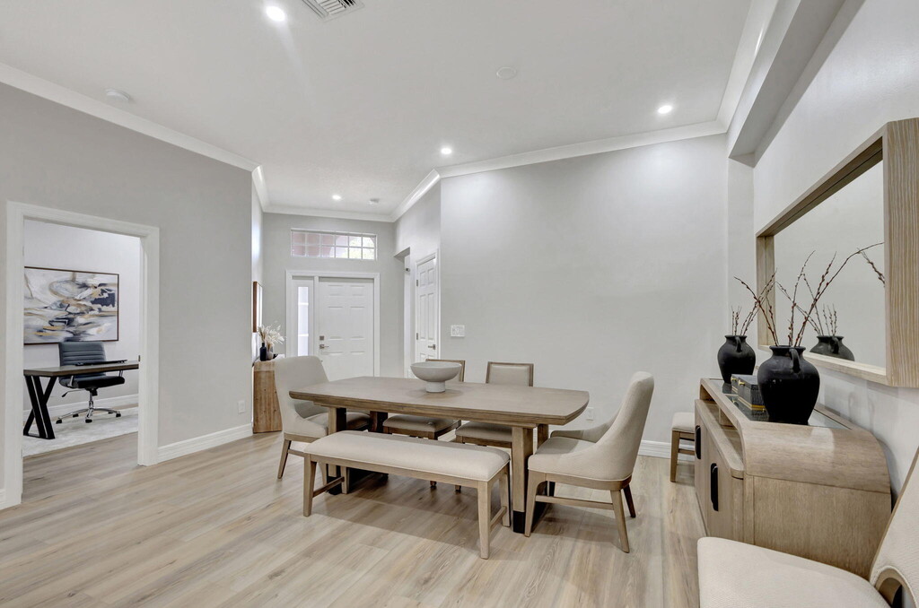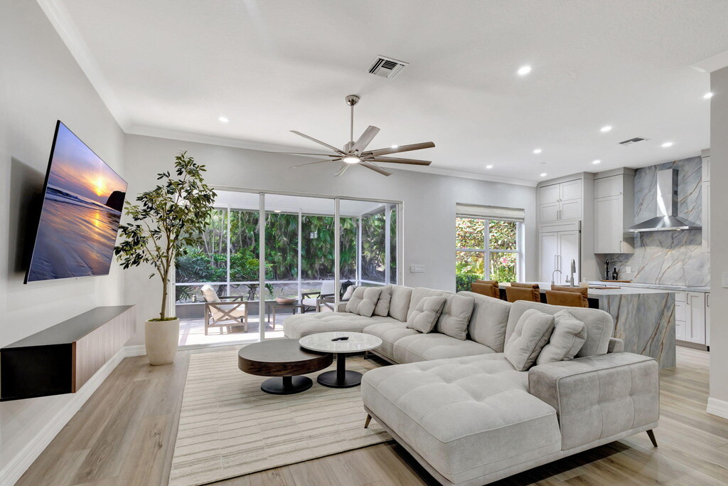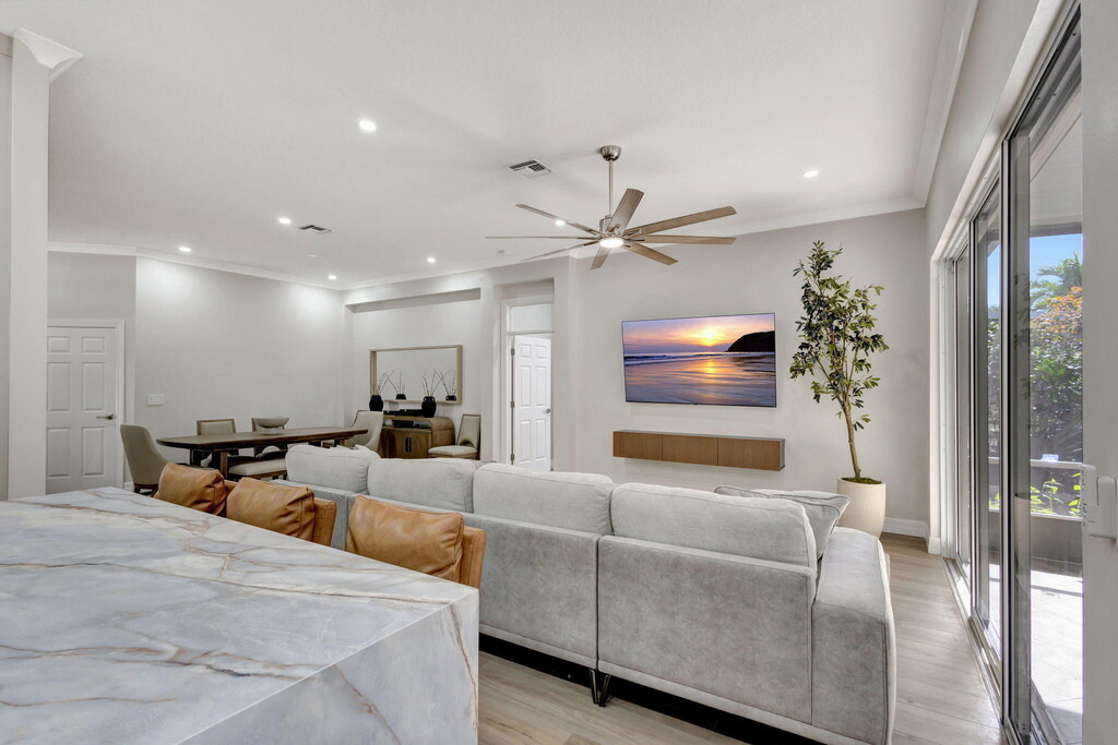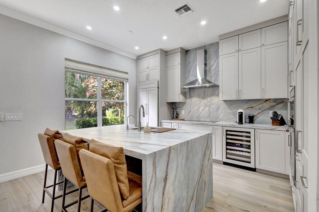 This stunning 3 bed/2 bath villa has been meticulously updated to provide the epitome of luxury and comfort. From the sleek, modern kitchen with top-of-the-line appliances to the spa-like bathrooms with premium finishes, every detail has been carefully curated to enhance your living experience. The open floor plan seamlessly blends indoor and outdoor living spaces, perfect for entertaining or simply relaxing. Furnished with high-end designer pieces that exude elegance and charm, every item has been carefully selected to create an inviting space for you to enjoy. With the included Class A FULL membership to Aberdeen Country Club, you'll enjoy access to unparalleled amenities and a vibrant social scene. Whether its golfing on the Jim Fazio designed 18-hole golf course,