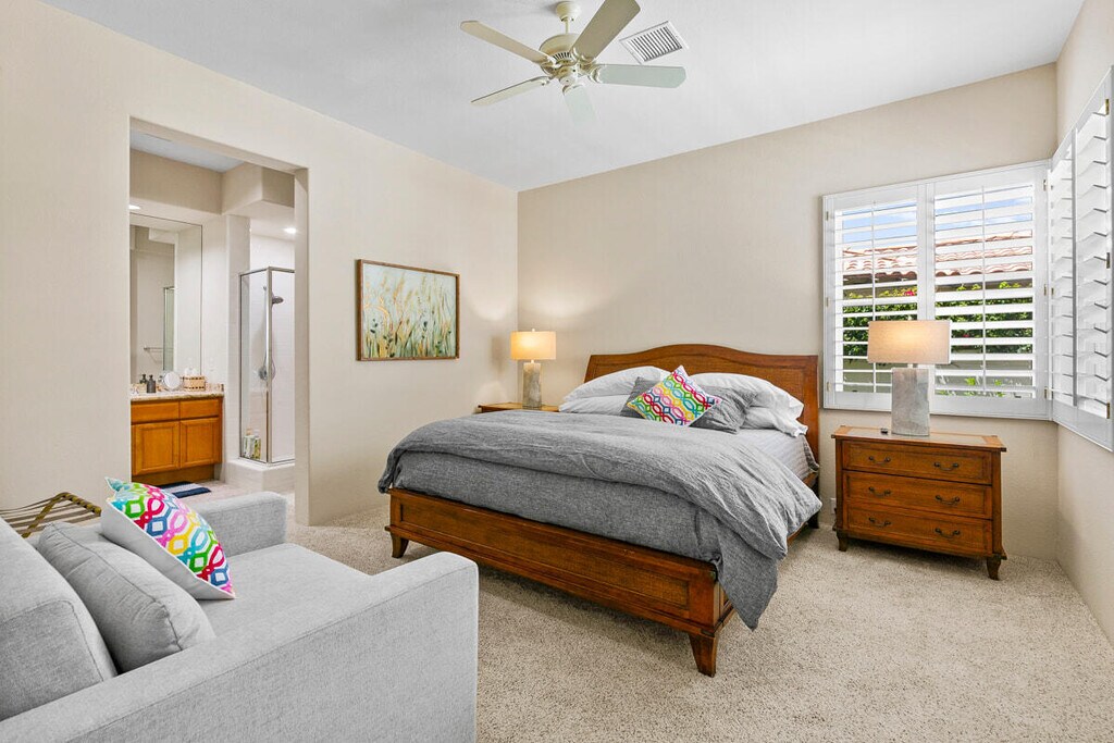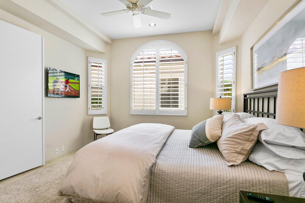 Lease Available Now Through 12/25/25 Experience elevated desert living in this newly furnished 3-bedroom,4-bath residence located inside the exclusive Country Club at Rancho La Quinta. Positioned on the golf course with captivating mountain views,this home offers the perfect blend of comfort,elegance,and privacy. Step into the beautifully updated interior featuring a new,fully redesigned kitchen with sleek granite counters and backsplash,stainless steel appliances,and a wine fridgeideal for everyday living or entertaining in style. Enjoy the best of indoor-outdoor living with your own private loggia pool and spa. The expansive patio,complete with brand-new furnishings,is designed to host unforgettable evenings under the desert sky. Take in sweeping views of the fairway and mountains from every angle. Each bedroom is spacious and thoughtfully appointed,providing a peaceful retreat,while the spa-inspired bathrooms add an extra layer of luxury. This exceptional home is a rare opportunity to lease in one of Rancho La Quinta's most sought-after communities. Make this serene,resort-style escape yours.
