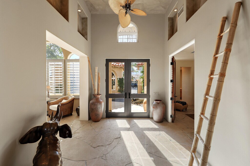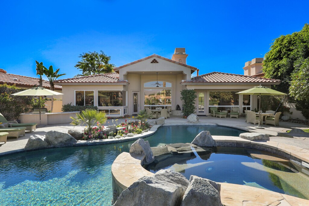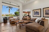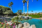 Beautiful 4BD/5BA home with over 3,500 sq. ft. overlooking the 18th fairway of a Robert Trent Jones designed course. This Spacious residence features flagstone flooring,high ceilings,abundant natural light,formal dining,full bar,spearate living and family rooms,and large picture windows with golf course and mountain views. The detached 1BD/1BA casita includes a fireplace and kitchenette-perfect for guests. Resort style backyard with a pool spa and covered entertaing spaces offering privacy and expansive views.A rare opportunity in one of La Quinta's most desirable communities. MLS # 219139474