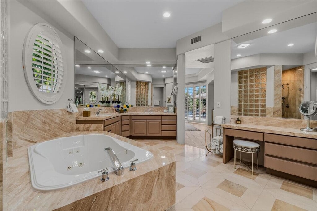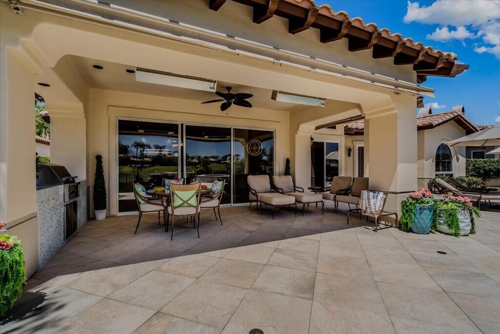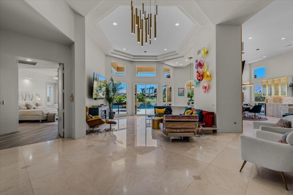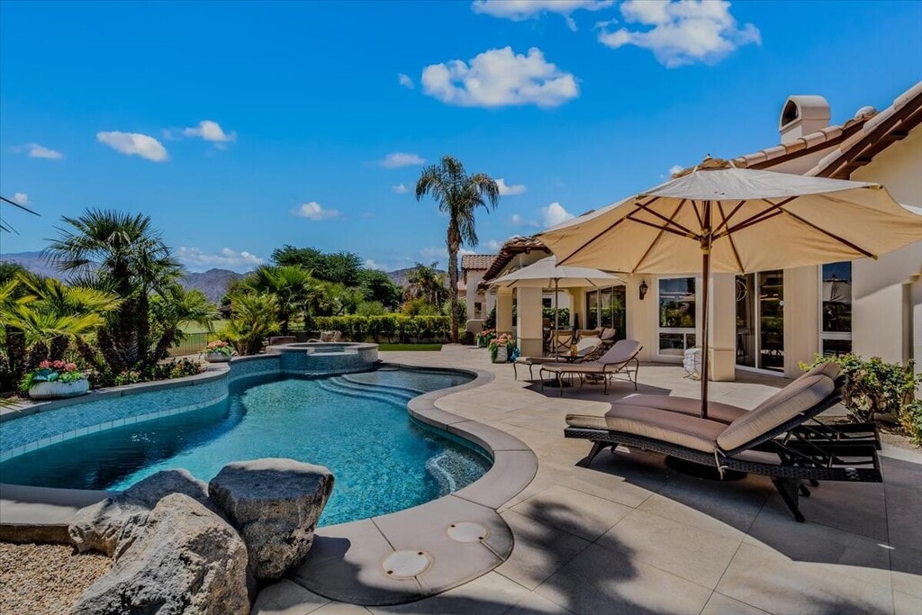 ICONIC DESERT LUXURY. This rare opportunity to experience magnificent southern mountain views from an exceptionally featured property within the timeless beauty of Rancho La Quinta Country Club,does not occur very often! This meticulously renovated and updated contemporary home places a premium on exceptional living spaces. With five bedrooms and five and a half baths,shared between two casitas and the main home. This masterclass in minimalist elegance spans 3,822 square feet of seamless lines and ease of transitional spaces all surrounded by a canvas of subdued and ward colors. This oasis was built to support a passion for an active lifestyle and five-star appetite! Among the many upgrades,this home features all-new plumbing,modern lighting,fans,and elegant plumbing fixtures. With a custom Executive Chef's kitchen designed by ''Kitchens and Baths By Lynn'',this space blends function and elegance equipped with Cambria Quartz surfaces,soft-close dovetail drawers,and an XL central island surrounded by an ILVE 48'' Nostalgic freestanding range/double oven,two dishwashers,warming/slow cooker oven,sub-zero refrigerator and a buffet space which features '' Larson Juhl'' framed gold cabinets. With an additional kitchen window,the San Jacinto mountains invite their brilliance into this space while inspiring your heart to explore the exceptional exterior,which boasts large entertaining area with firepit and heaters! Beautiful custom pool and spa. AVAILABLE for lease 2025/2026 SEASON