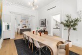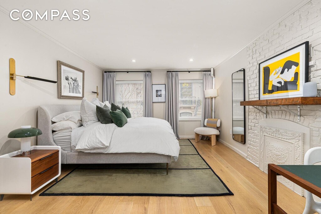 Set back behind a lush, 33-foot-deep landscaped front garden, 79 2nd Place is a three-bedroom triplex residence, occupying the parlor, garden, and cellar floors of a classic brownstone on one of the most prestigious and desirable blocks in Carroll Gardens—a street known for its mature trees, front gardens, and quiet residential character. The result is a rare offering that delivers house-like scale, privacy, and an elevated standard of comfort in the heart of brownstone Brooklyn. Spanning approximately 3,000 square feet, the home has recently undergone a high-end renovation that preserves its turn-of-the-century grandeur. Original tin ceilings, crown moldings, and generous proportions remain intact, paired with wide-plank Siberian white oak flooring and refined modern finishes throughout. The parlor floor is designed for both entertaining and daily living, with gracious living and dining rooms framed by soaring ceilings and restored architectural detail. The living room features a wood-burning fireplace, anchoring the space with warmth and presence. At the rear, the chef’s kitchen is outfitted with custom white oak cabinetry, Caesarstone countertops, and a professional-grade GE appliance suite plus a Bosch dishwasher, anchored by a central island and complemented by a decorative fireplace that nods to the home’s historic character. The kitchen opens to a deck leading to an expansive private bluestone patio and garden, creating a seamless indoor-outdoor connection. A discreet powder room completes this level. The garden level is dedicated to private living. The primary suite is serene and substantial, offering a dressing area with dual walk-in closets and a spa-like en-suite bathroom with a double shower, Waterworks fixtures, Italian porcelain tile, and a separate private WC room. Two additional bedrooms are well proportioned and enjoy direct access to the backyard. Storage is ample and thoughtfully integrated throughout. The cellar level features a large recreation area—a flexible space suited for media, work, fitness, or play—a dedicated laundry with washer and dryer, and an additional storage room. Modern systems include multi-zone ducted Mitsubishi climate control and premium soundproofing throughout the residence. Located moments from the F and G subway lines and the everyday buzz of Smith and Court Streets, 79 2nd Place offers refined townhouse living with scale, privacy, and modern performance—set on a quintessential Carroll Gardens brownstone block. Just outside your door: beloved neighborhood staples like Lucali, Frankies 457, Café Spaghetti, and Court Street Grocers, plus local favorites for coffee, wine, and specialty shopping that have anchored the community for generations. It’s classic Brooklyn living—elevated, effortless, and deeply rooted. Pets are allowed on a case-by-case basis. Kindly note the following fees are applicable: Application fee of $20 One-month security deposit First month's rent