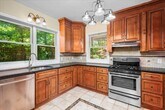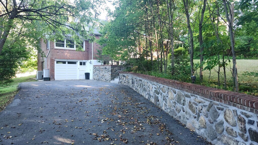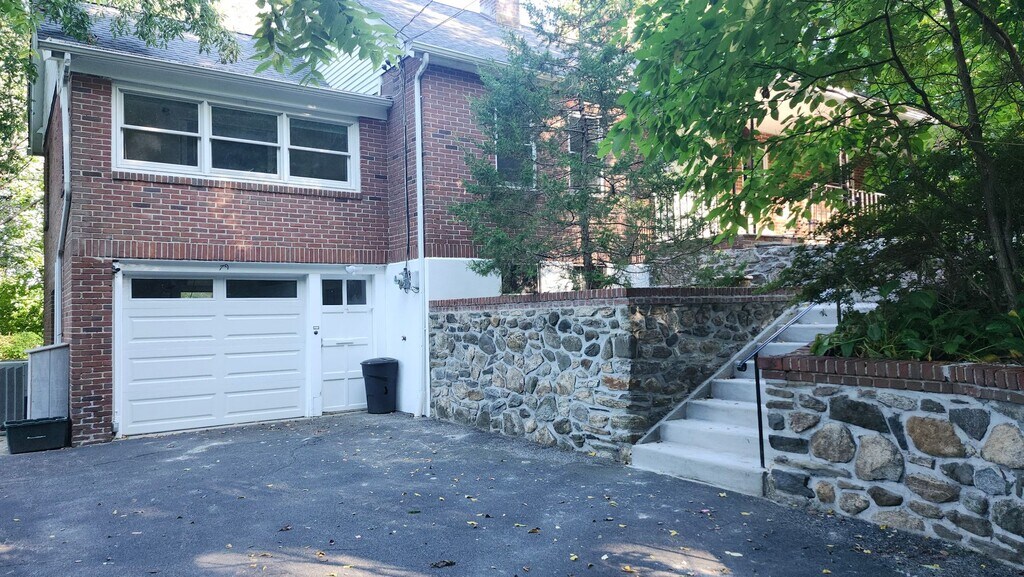 Short walk to train and heart of Pleasantville while living in privacy on street with homes only on one side facing the woods. 1800 square foot, 3-bedroom brick cape cod home with central air, stone-walled fireplace, 1 car garage, and long driveway. Updated kitchen with granite countertops and cabinets. Updated hall bathroom with Italian marble tiling and accessories. New flooring in a large bonus area in the basement, ideal as a TV den, playroom, or entertainment area with cabinets and a working sink. Large front and backyards for children with beautiful foliage and front views facing the woods.