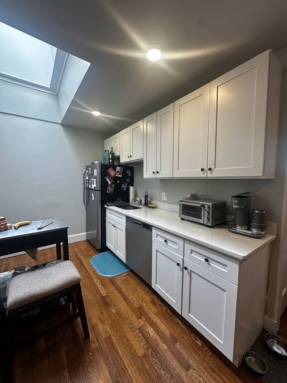 This modern 1-bedroom,1-bathroom apartment offers comfort and convenience in an unbeatable Quincy location. Featuring beautiful hardwood floors throughout,a spacious bedroom,and a sleek kitchen with a skylight,stainless steel appliances,and gas cooking,this home blends style with functionality. Just steps from the T line,grocery stores,and with quick highway access,commuting and daily errands are a breeze. A perfect choice for anyone seeking a stylish apartment in a prime location! MLS# 73439228