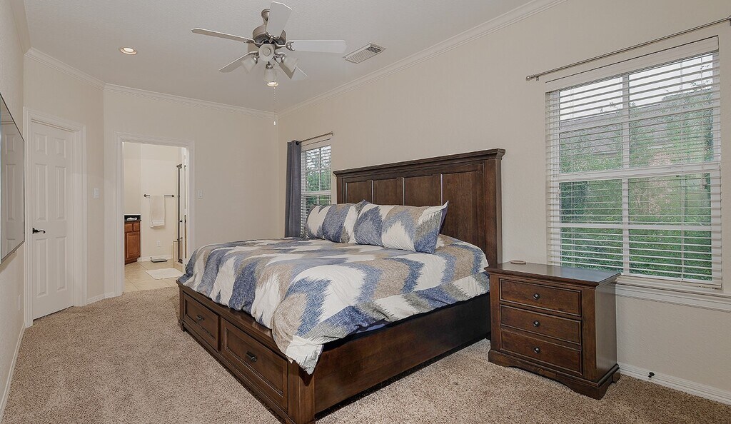 Corner townhome for lease in East Shore! With walkability to shops and restaurants along Woodlands Waterway and Town Center,a clubhouse with pool and fitness center,and close proximity to I-45 and area hospitals,East Shore's location is incomparable! 1st floor has a flex room with full bath; main living on the 2nd floor features an open concept island kitchen with granite counters,stainless steel appliances,gas cooktop,double ovens and pantry,overlooking the den with gas fireplace and breakfast room lined with windows. There's also a study with French doors and a half bath for guests on this floor. 3rd floor primary suite with balcony and two guest bedrooms with full bath,as well as a utility room. Wood flooring in the main living areas and neutral carpet in the bedrooms. Equal deposit; current credit report with scores required. No Pets & No Smokers Allowed! MLS ID 51105865
