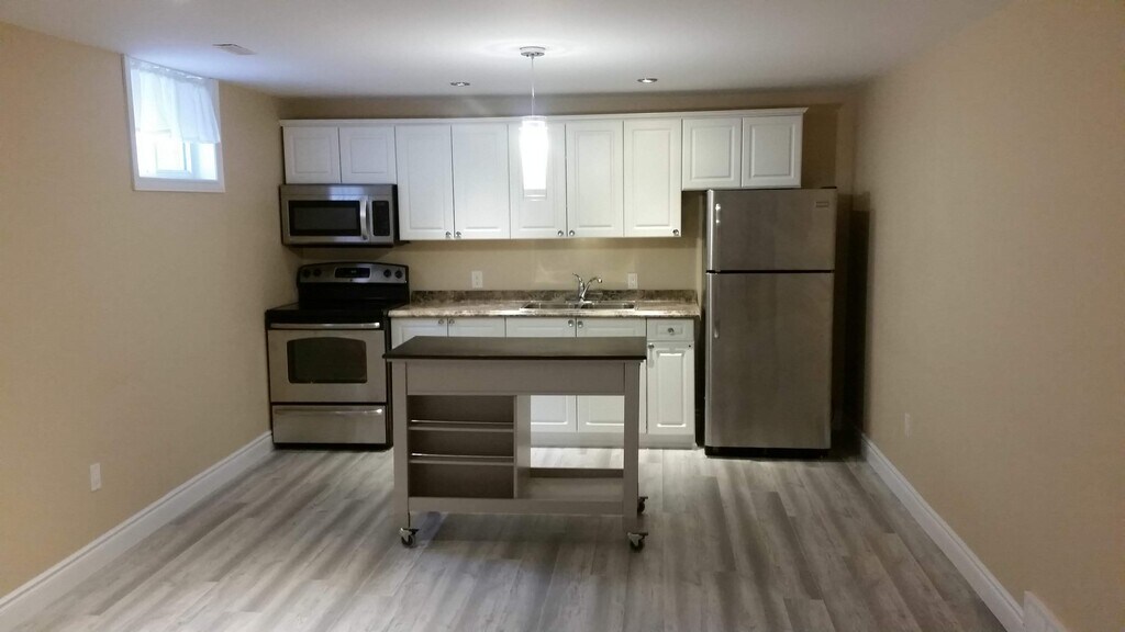Located in the desirable Forest Hill neighborhood of Kitchener, this spacious and well-maintained 2-bedroom, 1-bathroom basement apartment offers comfort, convenience, and privacy with its own dedicated entrance. Features: 2 spacious bedrooms with warm carpet flooring and large closets for ample storage Bright, open-concept kitchen, dining, and living room with plenty of lighting, including 2 windows, recessed lights, and a pendant light Kitchen equipped with stainless steel appliances, timeless white cabinetry, and a movable island for your most convenient setup Dedicated laundry room with washer, dryer, large freezer, and extra space for storage 1 full bathroom with clean, modern finishes Private entrance for your convenience 1 parking space included in the driveway Non-smoking unit Prime Location: 1-minute drive to highway access 5-minute walk to Forest Hill Public School 3-minute drive to Sunrise Plaza (shopping, groceries, restaurants, and more) Rent: $1,650/month + 40% of utilities This unit is perfect for professionals, couples, or small families looking for a private, well-equipped home in a convenient neighborhood. For more information or to schedule a viewing, please contact. Needed for application: References, Proof of income, credit check