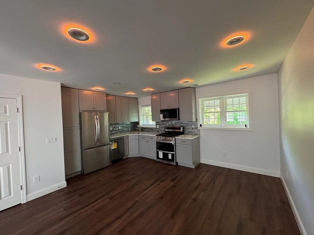 Stunning 2-Bedroom Duplex in Jersey City ! This beautifully renovated 2-bedroom, 1.5-bath duplex features all brand-new appliances and offers a warm, homey atmosphere in a family-oriented neighborhood perfect for anyone seeking comfort over the typical apartment-building feel. Enjoy bright, sun-filled rooms with plenty of windows and recessed lighting throughout, including elegant night-light halo lighting on the main floor. The home features brand-new central heat and AC with a smart, internet-based thermostat. The modern kitchen includes stainless-steel appliances, quartz countertops, and a stunning backsplash that shines in natural light. Additional highlights include a sink with a backyard view, a stainless gas double oven with a striking blue enamel interior, and an over-the-range microwave. The LED island light with adjustable gimbal provides excellent food-prep illumination. The duplex also offers a modern bathroom, a convenient kitchen pantry, and a washer and dryer located on the bedroom level. A new, energy-efficient tankless water heater provides hot water on demand. Enjoy access to a large backyard. Conveniently located just 5 minutes from the NJ Light Rail, NJ Transit buses and Just 2 Minutes from NJCU.