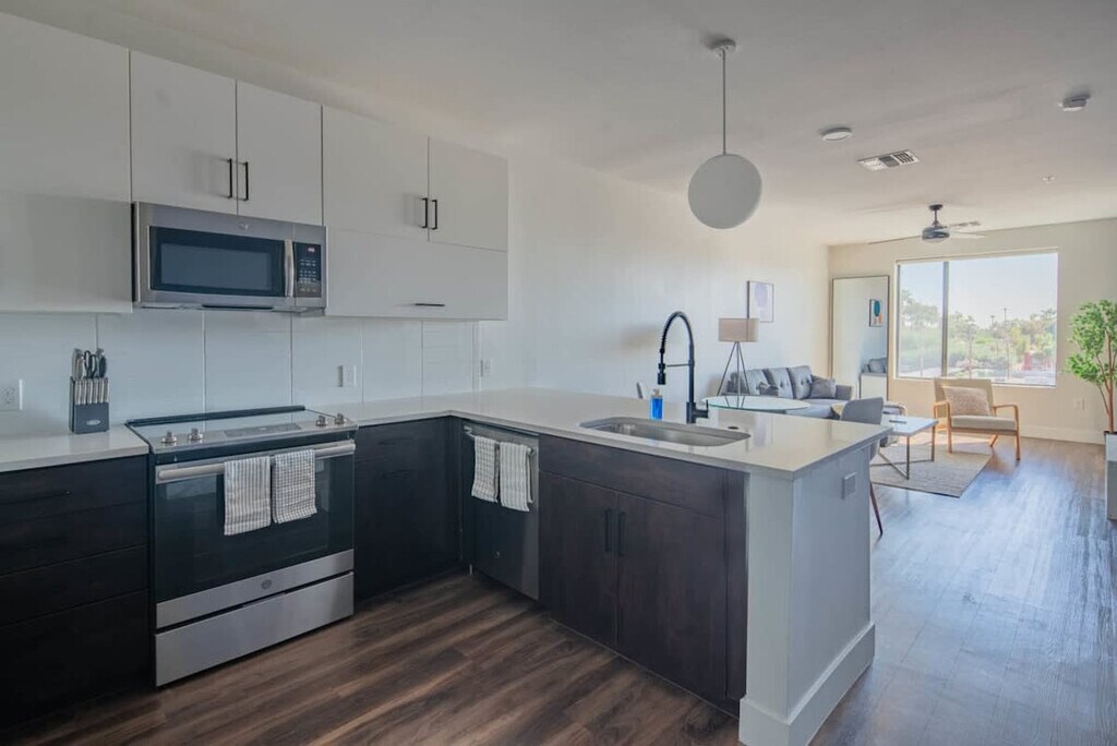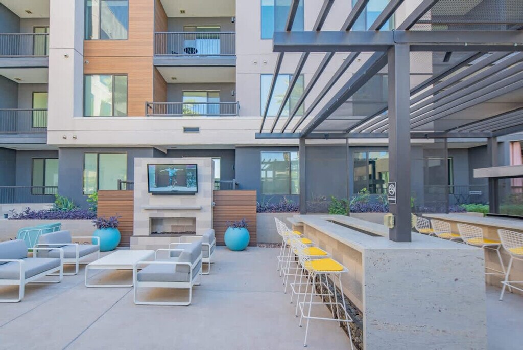 Relax and unwind in this stylish 1-bedroom apartment located in the heart of Central Downtown Tempe. This vibrant area is home to numerous award-winning restaurants, shops, historic landmarks, and attractions. From this prime location, exploring Tempe and the surrounding region is easy and convenient. And when you're ready to wind down, simply retreat to the comfortable apartment to relax. Come relax in this 1-bedroom, 1-bathroom unit. The living space features an innovative open-concept design that blends the living and dining areas with the kitchen, creating a modern and sleek living experience. The living room is ideal for relaxing and enjoying the company of friends and family while watching a good movie or a show. The apartment features a fully equipped kitchen where you can easily prepare your favorite meals. The inviting full bathroom is completely private and stocked with all essential toiletries. One parking space is included. Pets are allowed depending on size or if they are service animals. An additional cleaning fee is required per pet: 1-7 Nights: additional $25 per night, 8-29 Nights: additional $200, 30+ Nights: additional $300. There is a 2 pet maximum and only cats and dogs are allowed. If you are found to have brought pets without prior notification, there will be a $500 fee. Nestled along the picturesque banks of the Salt River in Tempe, Arizona, the neighborhood offers a perfect blend of urban vibrancy and natural beauty. This prime location provides easy access to the vibrant heart of Tempe, known for its lively atmosphere and cultural attractions. Just a short stroll away, you'll find the iconic Tempe Town Lake, a shimmering oasis amidst the desert landscape, where you can enjoy boating, biking, and walking trails. The neighborhood is also a haven for food enthusiasts, with an array of restaurants, cafes, and bars serving everything from local Southwestern cuisine to international flavors. For those seeking entertainment, the nearby Mill Avenue District boasts an array of shops, theaters, and live music venues. Whether you're looking to explore the great outdoors or immerse yourself in Tempe's diverse cultural scene, this neighborhood offers a dynamic and inviting backdrop for your stay. Quiet hours are between 10pm and 8am every day. If there are noise complaints or any violation of this rule, it may result in cancellation of booking and removal from the property without refund. There is a strict no-party policy. No parties or events are allowed. If there is a party of any kind, the police will be called and everyone will be removed from the property with no refunds. Smoking is prohibited without exception on this property. If any signs of smoking are found in the unit or on the premises, a fine of $500 will be imposed. You may be charged extra for cleaning if the property is left in a state that necessitates additional cleaning. Lost or unreturned keys will incur a fee of $80 for key replacements and $150 for key fob replacements. Depending on our cleaning schedule, early check-in or check-out may be accommodated at a fee of $25 per hour. Otherwise, for delayed checkout, there will be a $500 late check-out fee. If a lockbox is provided, it must be kept locked at all times. Some stays have auto-locking doors so keep the keys on you. The bedroom includes an office desk and chair, providing a comfortable space for remote work. High-speed Wi-Fi is available throughout the apartment. [SI]